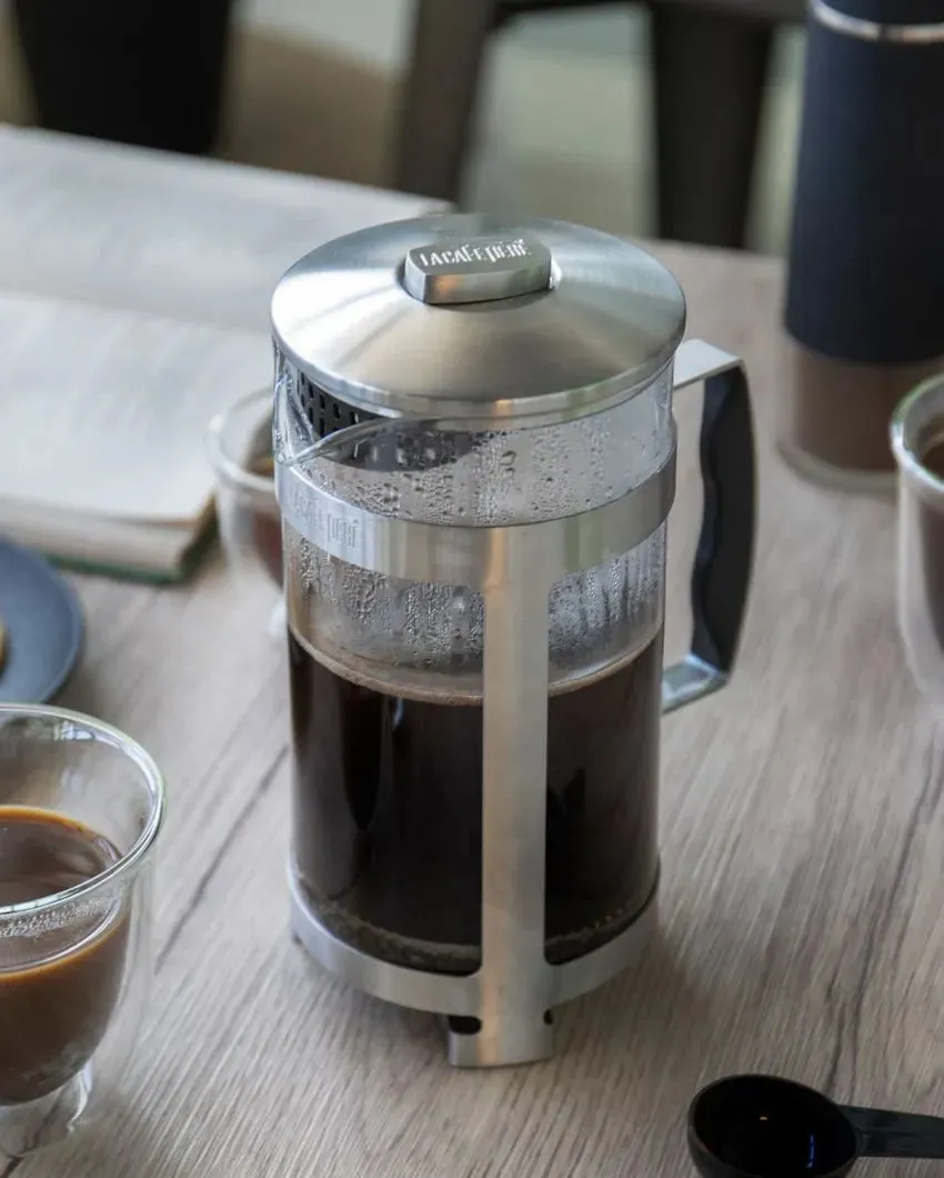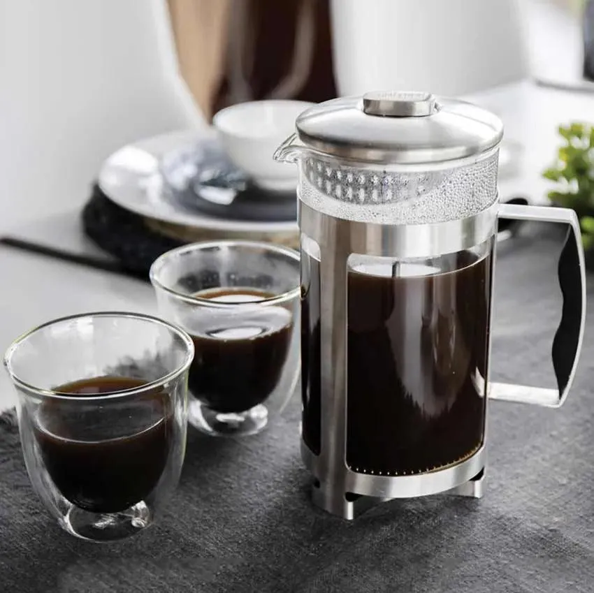 - Trieste French Press Coffee Maker: This sleek and timeless French press boasts a minimalist design that adds a touch of elegance to any coffee lover's kitchen. Its borosilicate glass beaker sits within a shimmering stainless steel frame, combining style with durability. The high-grade stainless steel mesh filter ensures optimal extraction of flavors, resulting in smooth and rich brews that delight the senses.