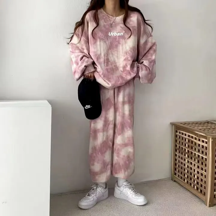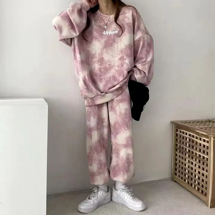 2 Pcs Women's Long Sleeve Tie Dye/Splash-ink Pants Set