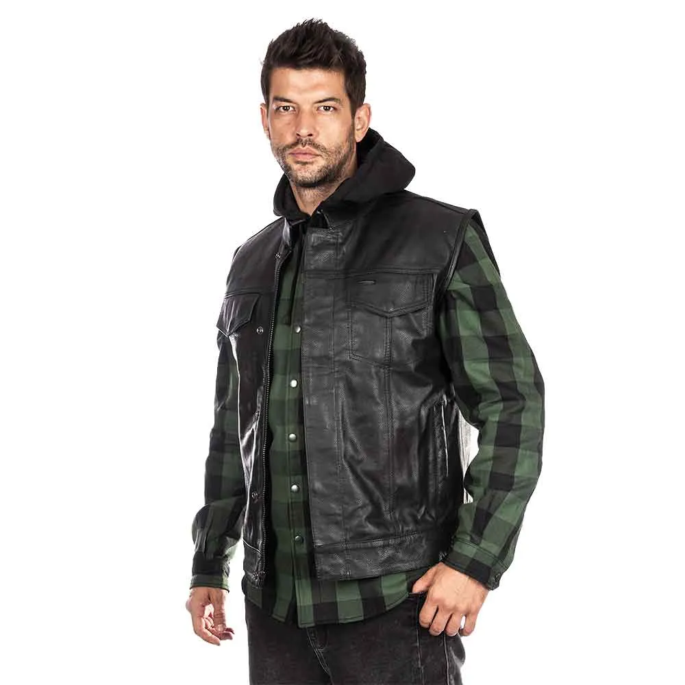 The outer layer is made from 100% full grain buffalo leather, while the inner layer is 100% nylon, providing comfort and durability. For the perfect fit, measure a well-fitting vest from below the arm and compare it to our sizing chart. Please note, the measurements on our chart are half garment measurements.