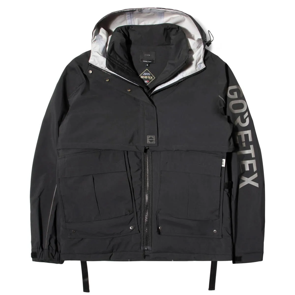 The Goretex 3-Layer Jacket is a full waterproof hooded jacket made from three layers separated into three components. The Sleeves and hood are completely detachable from the inner padded vest layer and can also be suspended off the shoulders. 3M piping details and logo branding illuminate in direct contact with light for easy visibility.