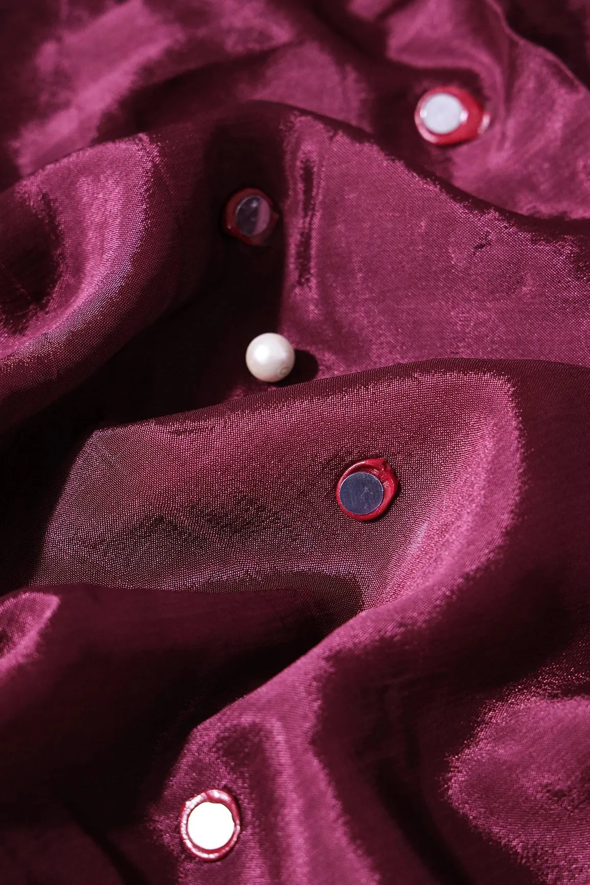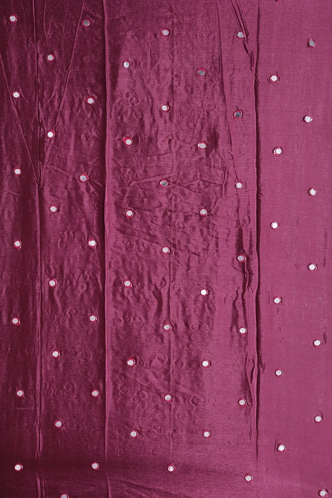 3.50 Meter Cut Piece Of Real Mirror Embroidery Work On Maroon Viscose Chinnon Chiffon Fabric