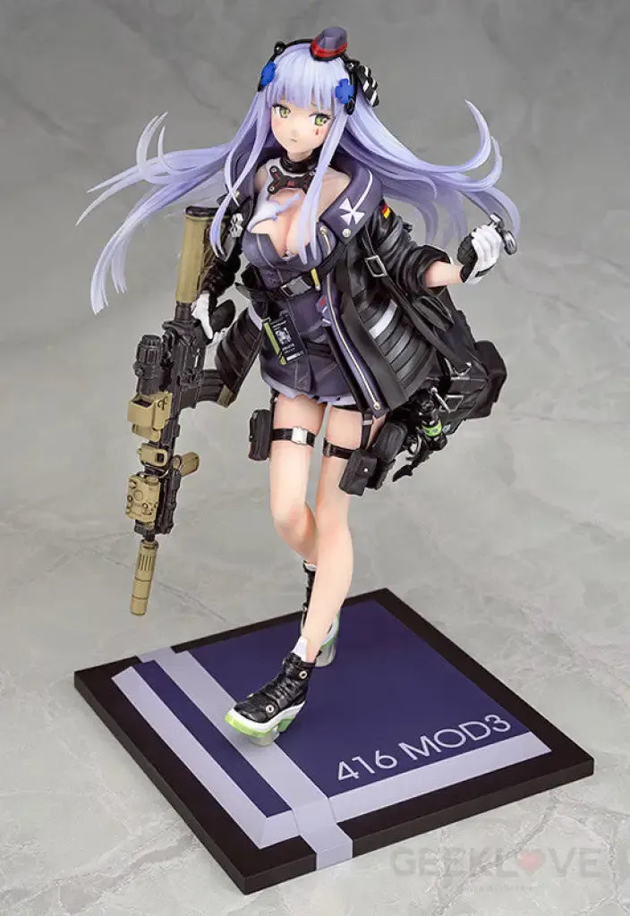 From the popular smartphone game "Girls' Frontline" comes a 1/7th Scale figure of the Assault Rifle T-Doll 416! 416 has been recreated in her MOD3 appearance from the game. 416's MOD3 equipment contrasts with her pale skin showing beneath the damaged parts of her outfit, making for an eye-catching display.