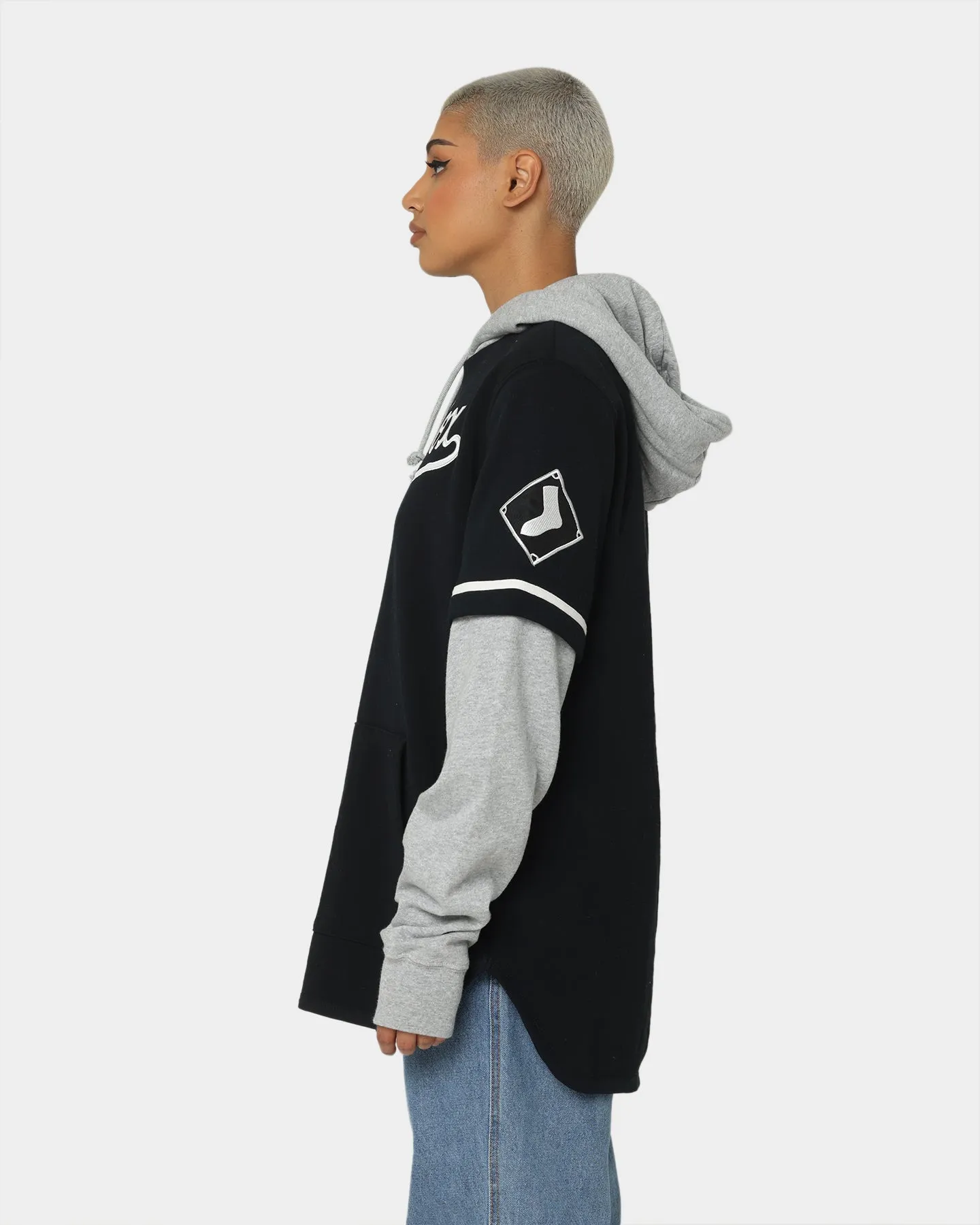 Combine your love of sports and streetwear by copping the Chicago White Sox Shortstop Hoodie. This bold hoodie features contrast sleeves and hood, a layered look, and embroidered team logos on the sleeves and chest. Don't sleep on this iconic hood. - Regular fit - Embroidered team logos on the chest and sleeve - Layered design - AU/NZ Exclusive - Contrast sleeves and hood- Twin needle stitching- Hood with drawcord - Scoop hem- Kangaroo pocket- 47 Brand pip tag- Ribbed cuffs - Fleece lined - Composition: 80% Cotton/20% Polyester - Colour: Jet Black - Style: BB006PMTRSP560542JK