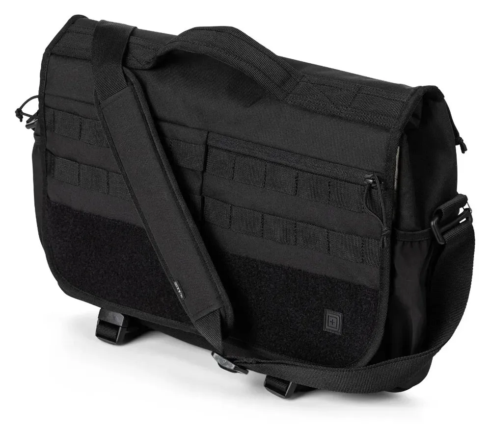 Constructed from rugged 500D nylon, this versatile messenger bag will handle all the frequent flights, daily commutes and coffee shop meetings you throw at it. The main compartment keeps you organized with three mesh zippered pockets, hook-and-loop slip pockets and a water bottle holder. Carry up to a 15-inch laptop or tablet computer in the external rear padded zippered pocket or internal padded sleeve. Padding throughout the Overwatch Messenger is designed to protect your important gear. Stash optics, plane tickets, multi-tools and other travel accessories in the front pockets and admin panel, while the external MOLLE provides accessory attachment. The padded shoulder strap, soft mesh panel on the rear and external water bottle pocket help you comfortably navigate the day. A luggage handle pass-through enables you to stack the messenger on top of your luggage when you’re checking into a hotel or rushing through an airport.