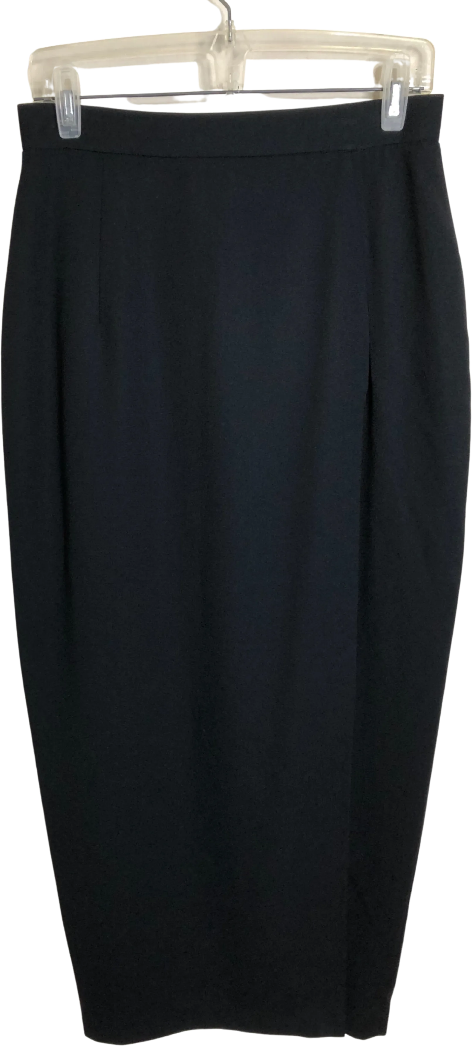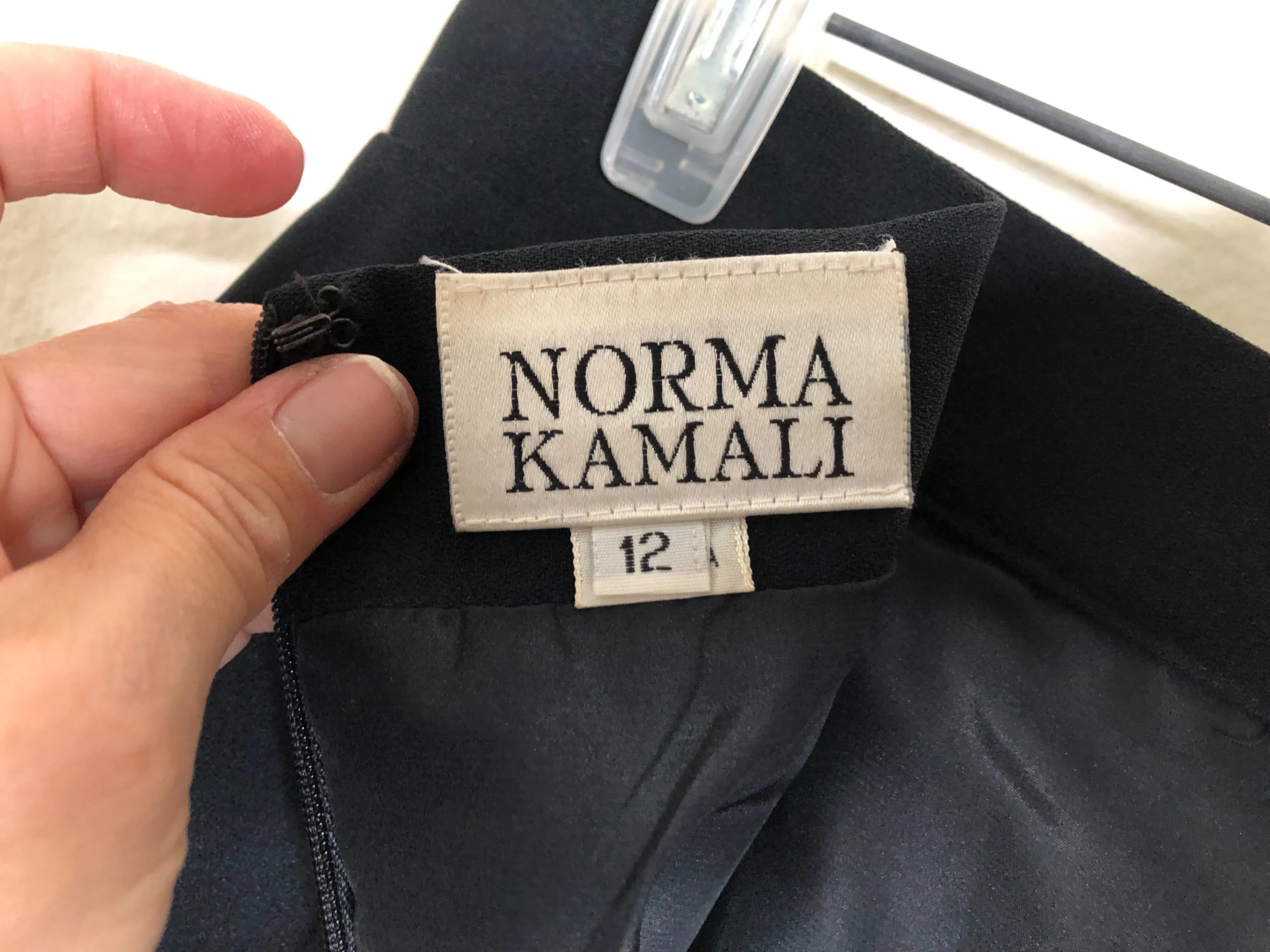 Elegant vintage 1980s Norma Kamali long black skirt with a high slit on the front left side. Zip and button back. No fabric tag, but the material is crepe, and the skirt is fully lined. In excellent vintage condition, with no flaws of any kind. Marked size 12; the below approximate flat lay measurements indicate that it would best fit a size Medium. Please compare to a garment that fits you well to ensure proper fit.