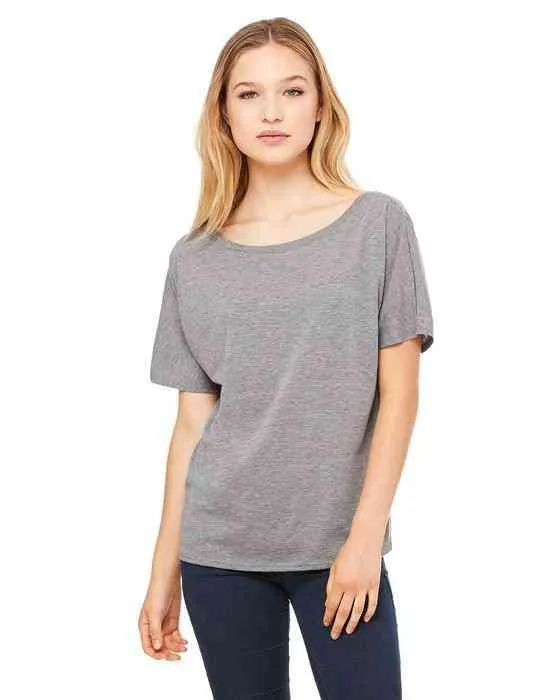 Designed to perfectly drape over a woman's body, this tee features a luxuriously soft poly viscose fabrication, slouchy fit, wide neckline that can be pulled off the shoulder and short sleeves. Offered in solid, triblend and marble colors.
