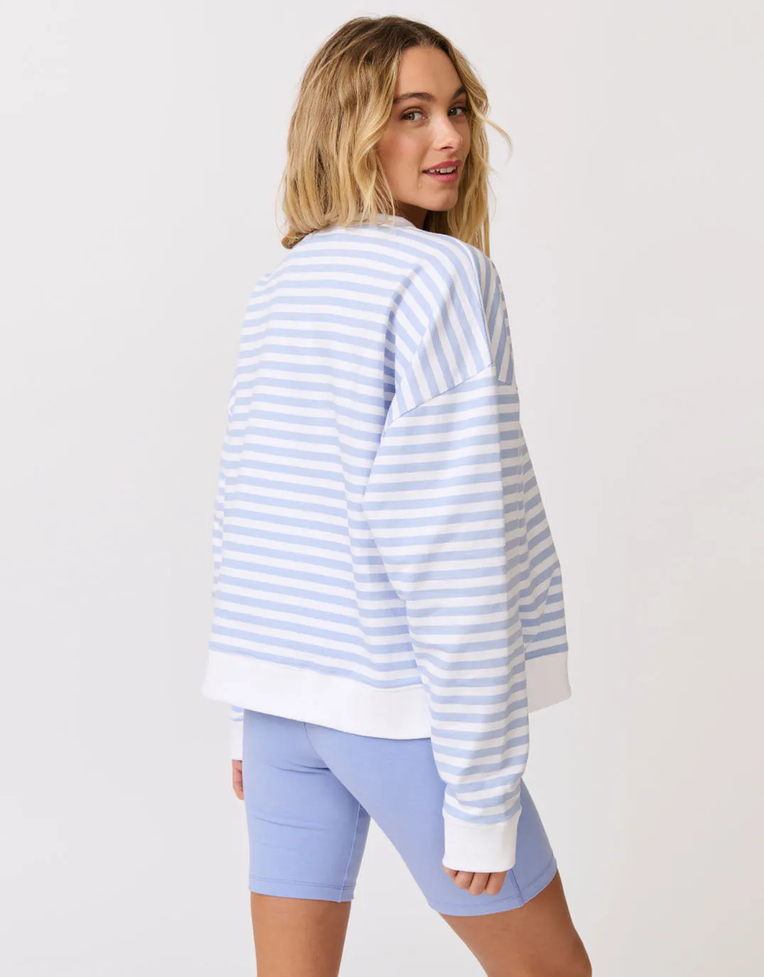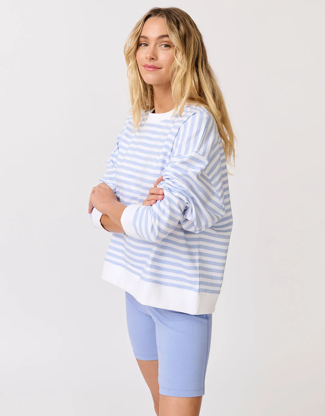 Add a touch of nautical charm to your casual wardrobe with the Ada Slim Sweater in Cornflower Stripe by . This stylish sweater features a slim, slightly boxy fit. The classic cornflower blue and white stripes provide a fresh and vibrant aesthetic, making it a versatile piece for any season. Crafted from premium cotton, this sweater ensures comfort and durability, ideal for everyday wear.