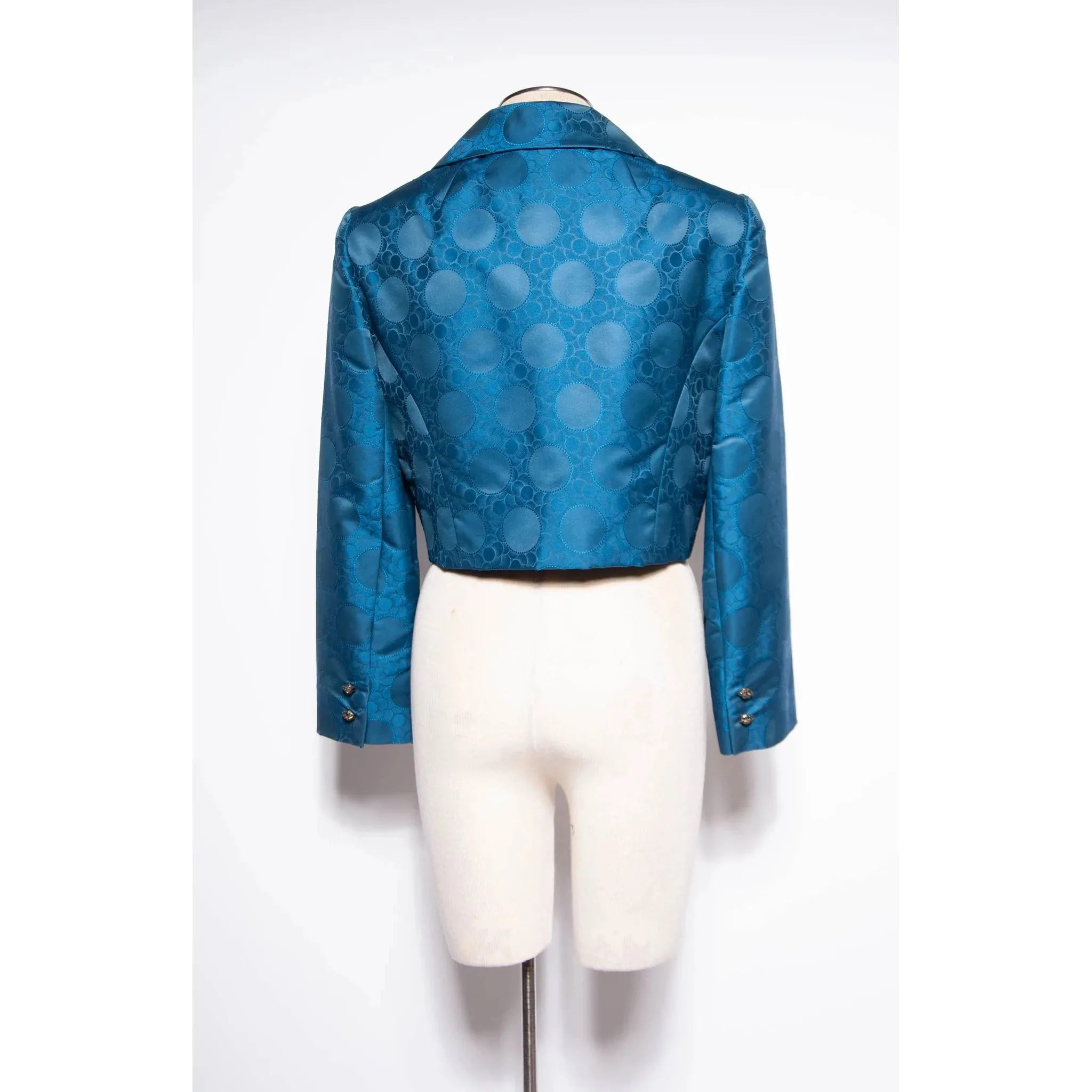 Condition: Great vintage condition. There are tiny marks/stains throughout that are hardly noticeable, there is a bit of staining by the label that is noticeable. There are a few small stones missing from the buttons as well.