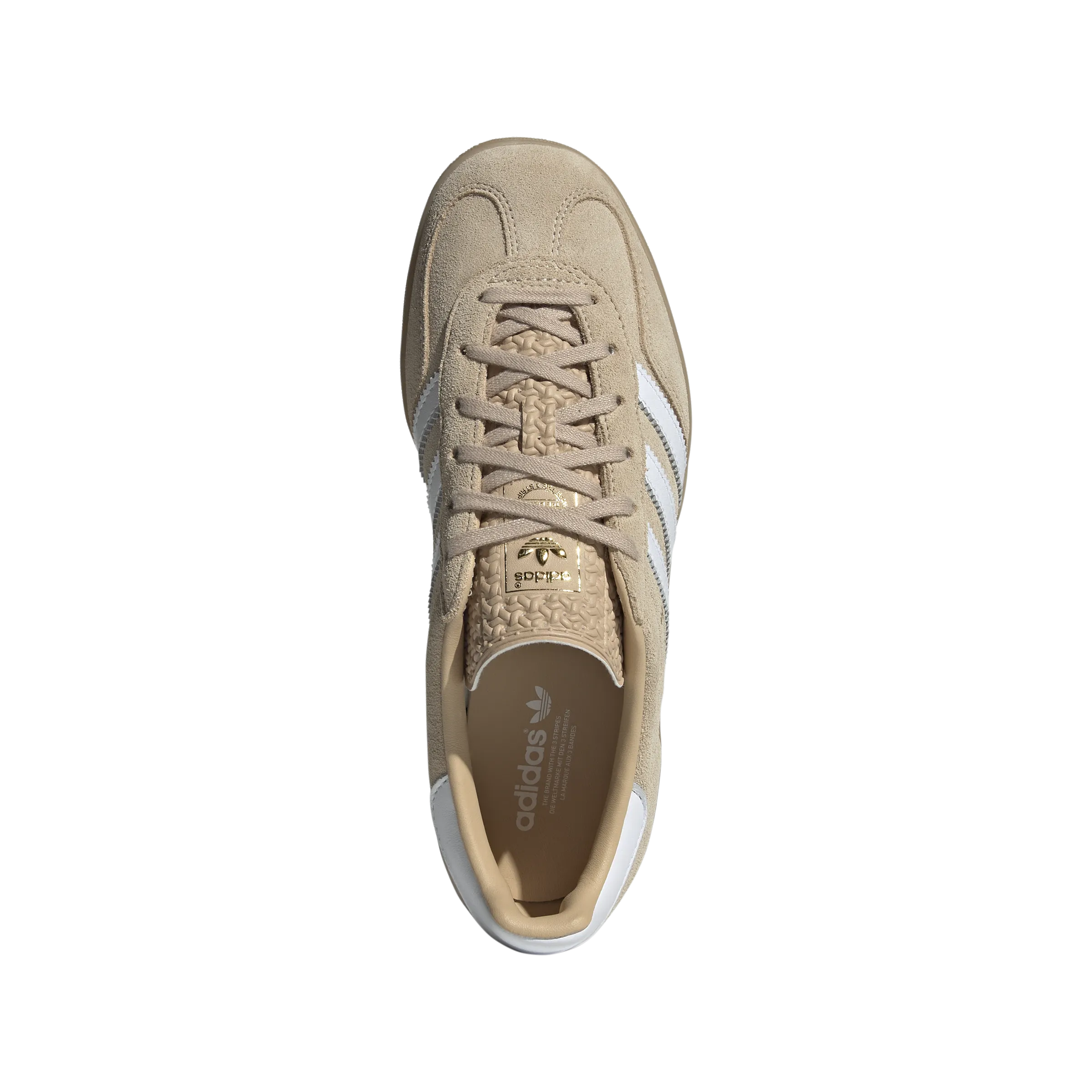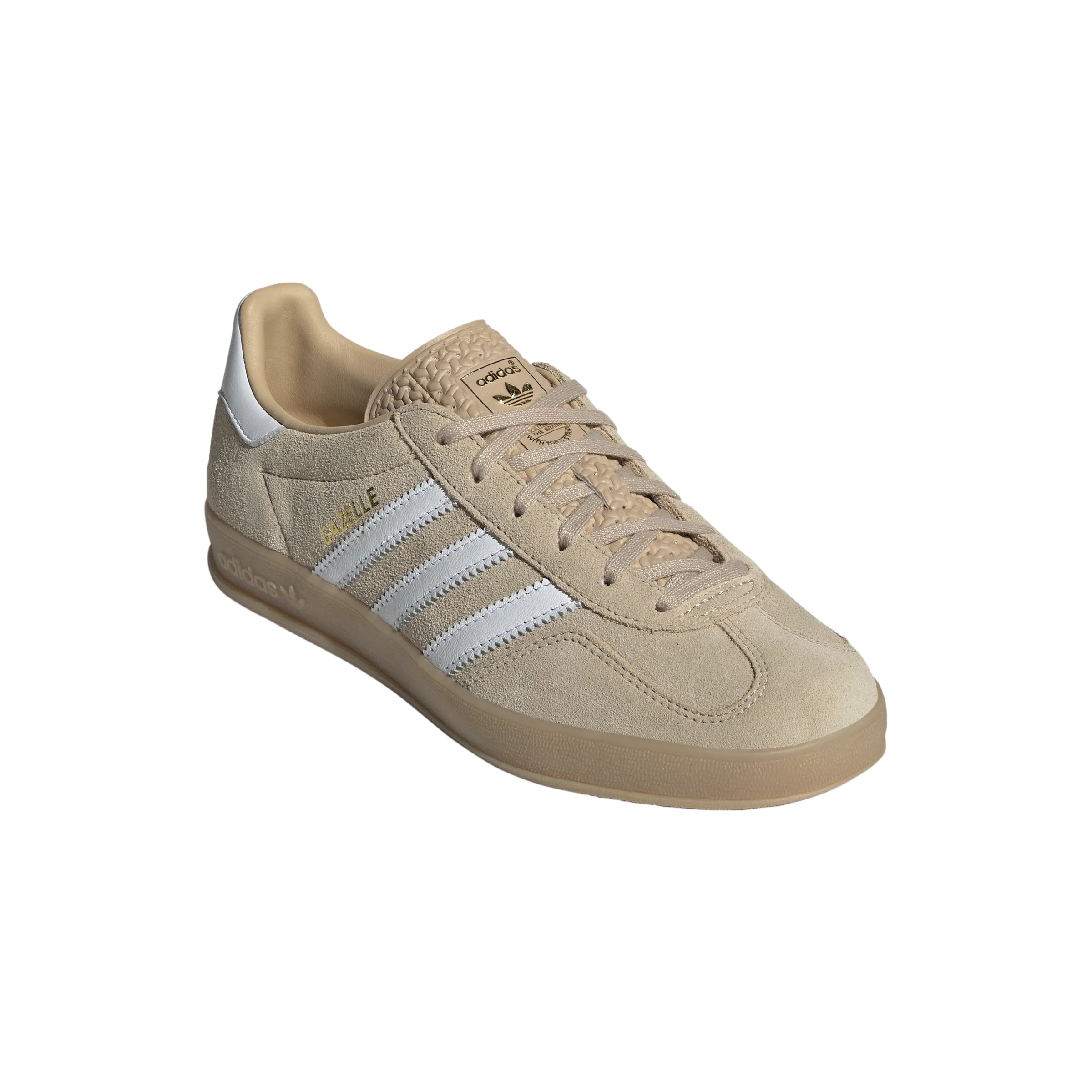 Step into a rich history with the woman's Gazelle Indoor Shoes, an elegant blend of our archive and modernity. Crafted from soft suede leather with a translucent gum sole, originally introduced as an indoor alternative to the 1968 OG Gazelle. The understated colour palette is perfect for year-round wear, offering a luxury feel that marries style and comfort seamlessly. Lace up these timeless classics and make every step count.n pays homage to adidas heritage while adding a luxe look and feel to your outfit.