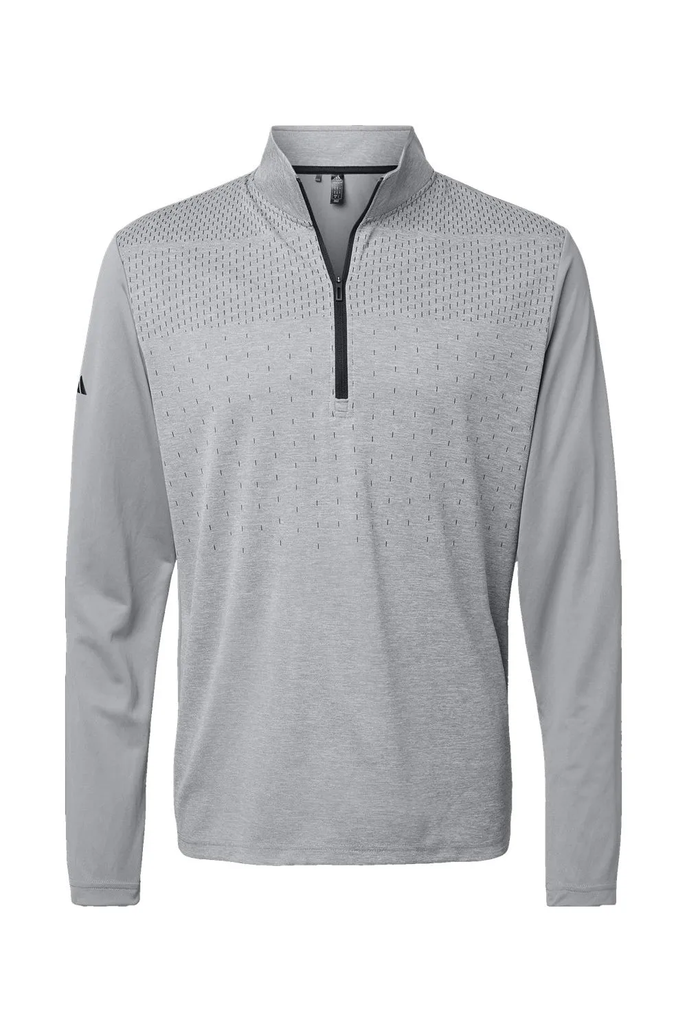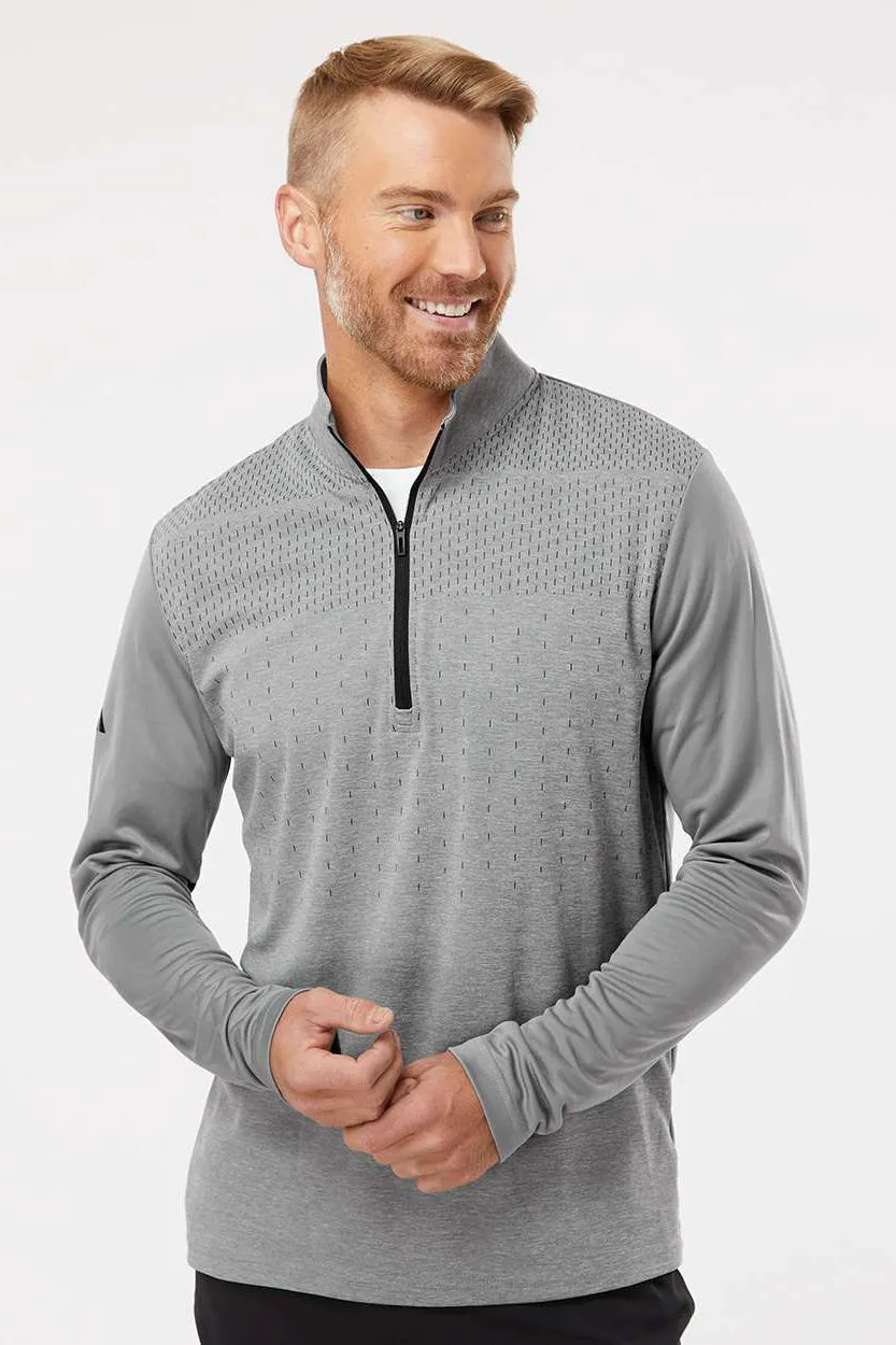 Adidas Mens Heather Block Print Moisture Wicking 1/4 Zip Sweatshirt - Grey Melange/Grey/Black - NEW