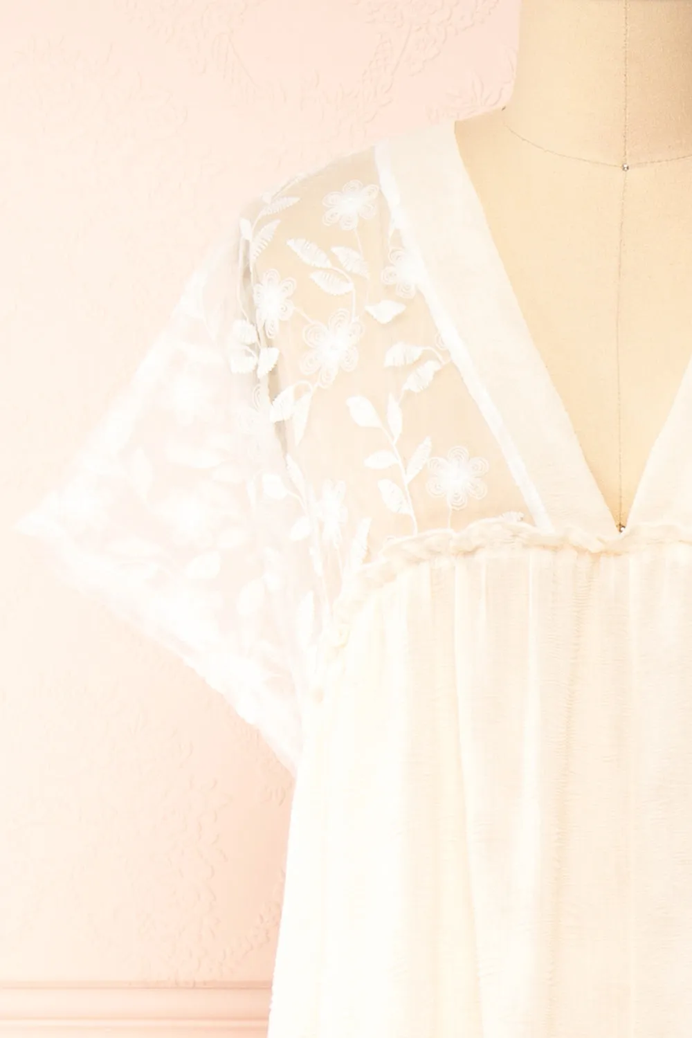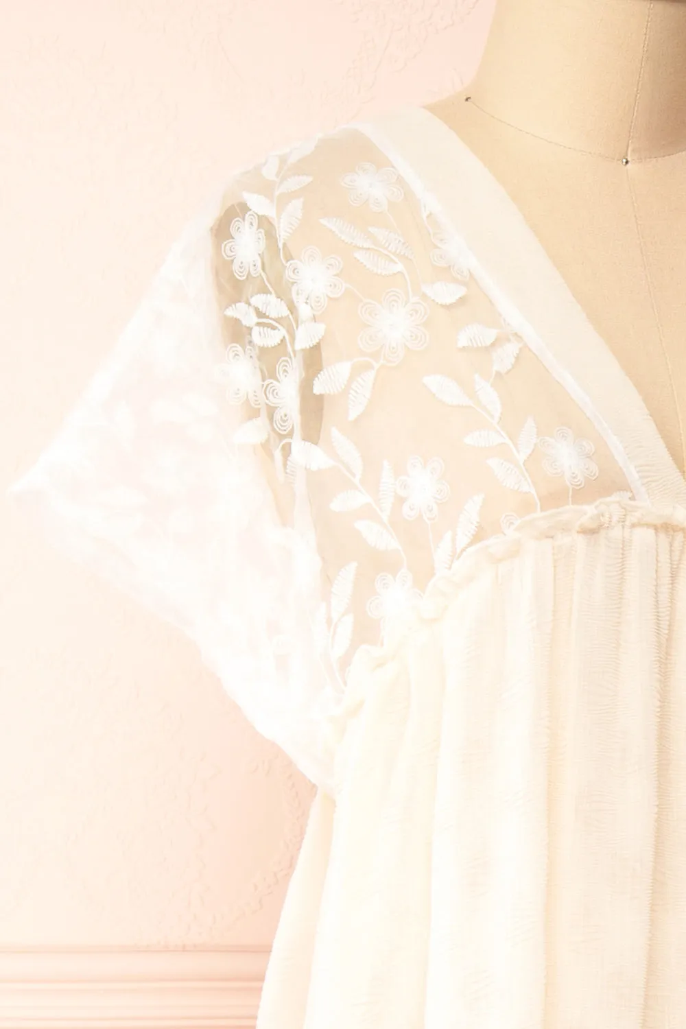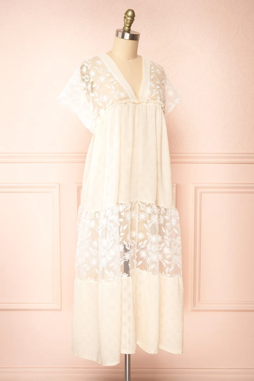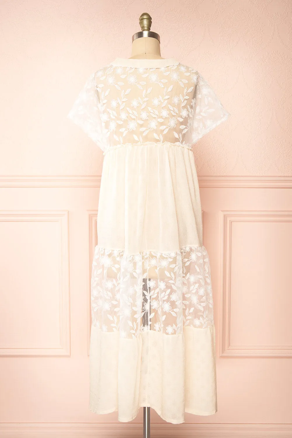 Ailee | Beige & White Tiered Midi Dress w/ Embroidery