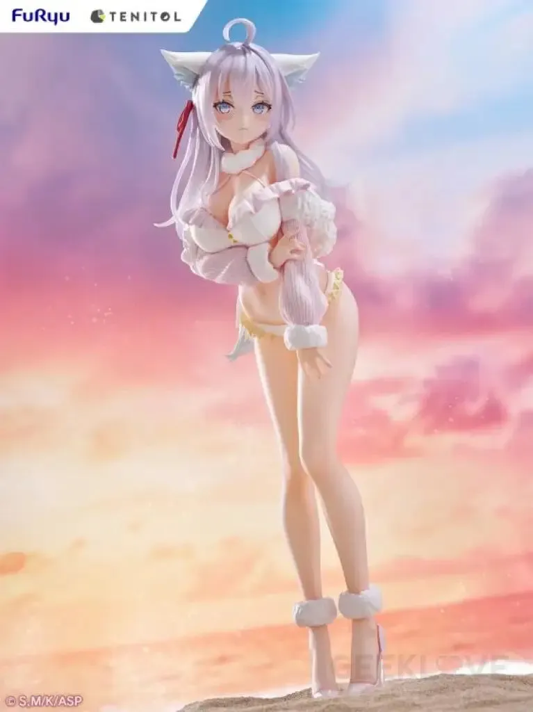 She wears a unique swimsuit inspired by the white fox, with her fluffy outfit and impressive proportions meticulously sculpted. Her signature embarrassed expression from the series is beautifully brought to life with detailed coloring. Clear parts are used for her hair, giving it a stunning, translucent look. Add this captivating figure to your collection!