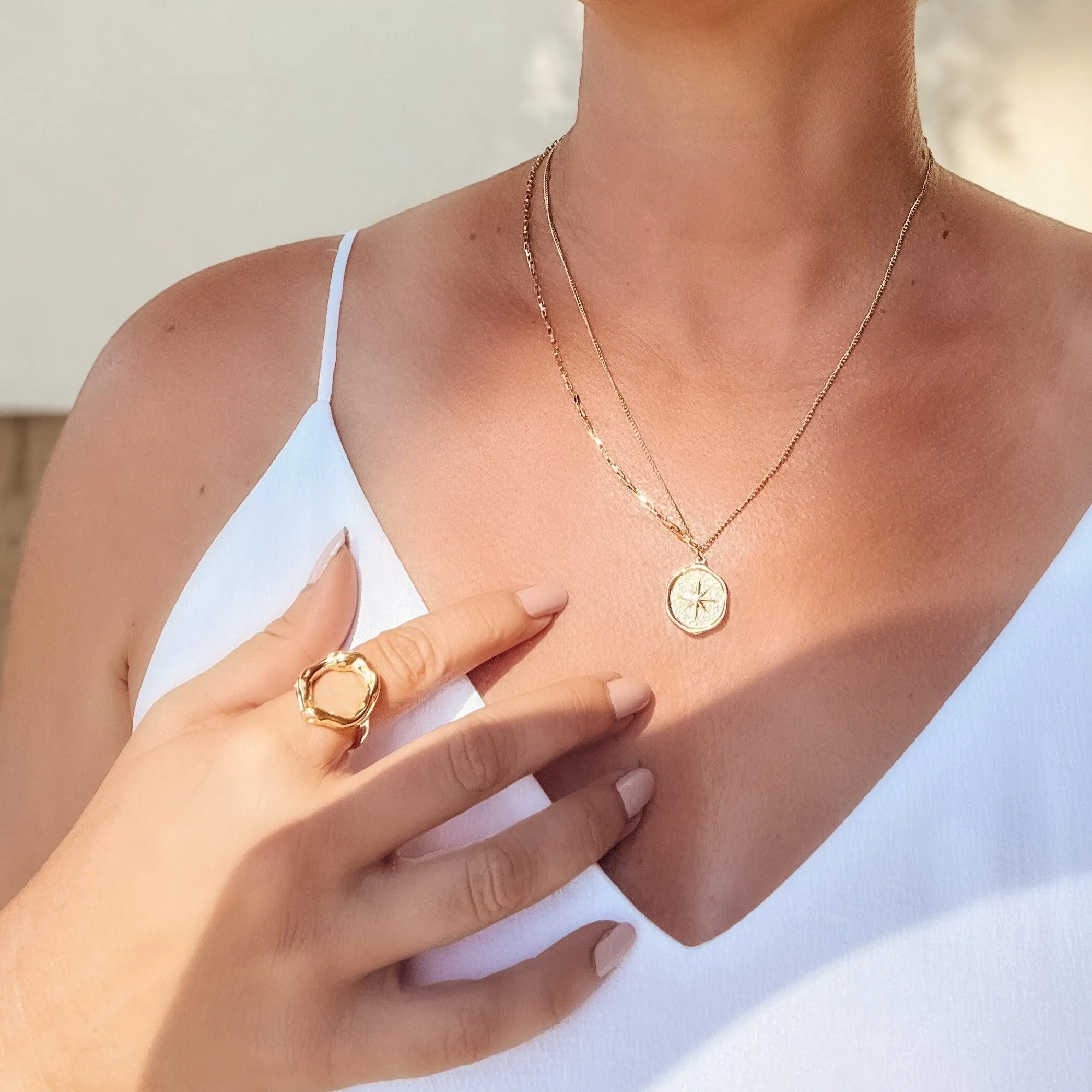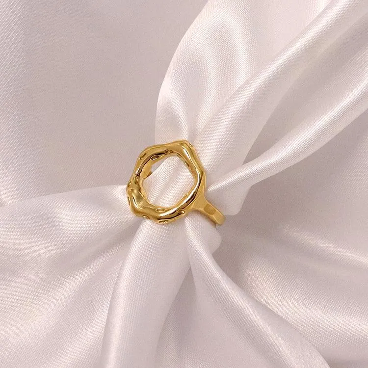 This one-of-a-kind flower motif ring will have everyone wondering if it's vintage. This piece is timeless thanks to the melted texture detail. We created a wide circular shape that is asymmetrical and stays in place on your finger.
