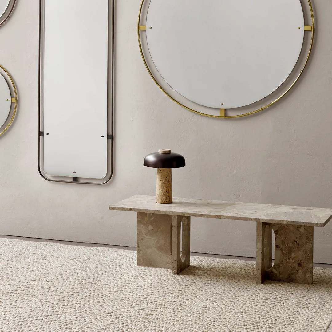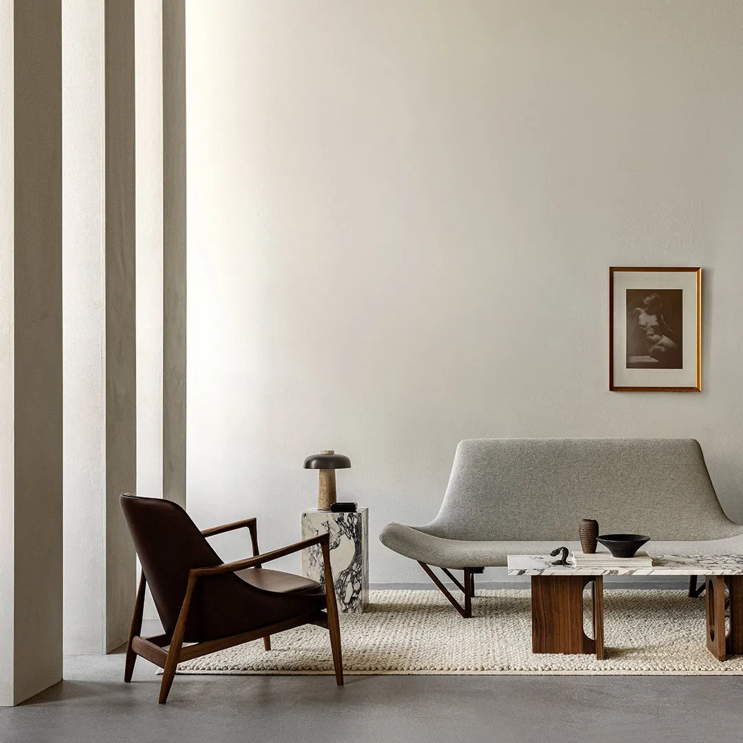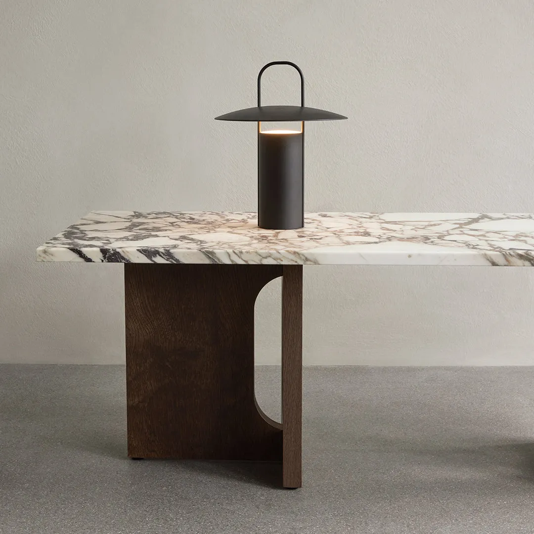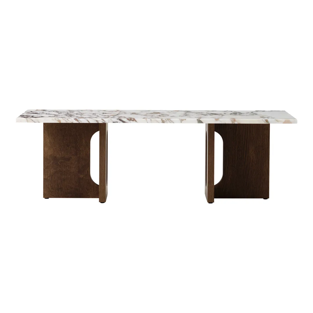 MENU's Androgyne Collection is distinguished by its playful, yet elegant silhouette and considered combination of natural materials. The invention of the Copenhagen-based Norwegian architect and designer Danielle Siggerud, its blend of the masculine and feminine, true androgyny, is what lends the collection its name. Like a magnificent monument, the new Androgyne Dining Table pairs oak and stone to striking effect. The bold and confident take on a dining table amplifies the silhouette of the collection's popular side table to grander proportions thanks to an elegant oak base, available in natural or dark stained, and a table top in corresponding wood or kunis breccia, an artistic blend of stones in warm tones that create subtle texture and add a new dimension to the design. A table not for the faint of heart, it makes a characterful accent in any space, from a domestic dining room to a modern restaurant or office gathering point, and serves multiple functions to bring a timeless quality to the design.