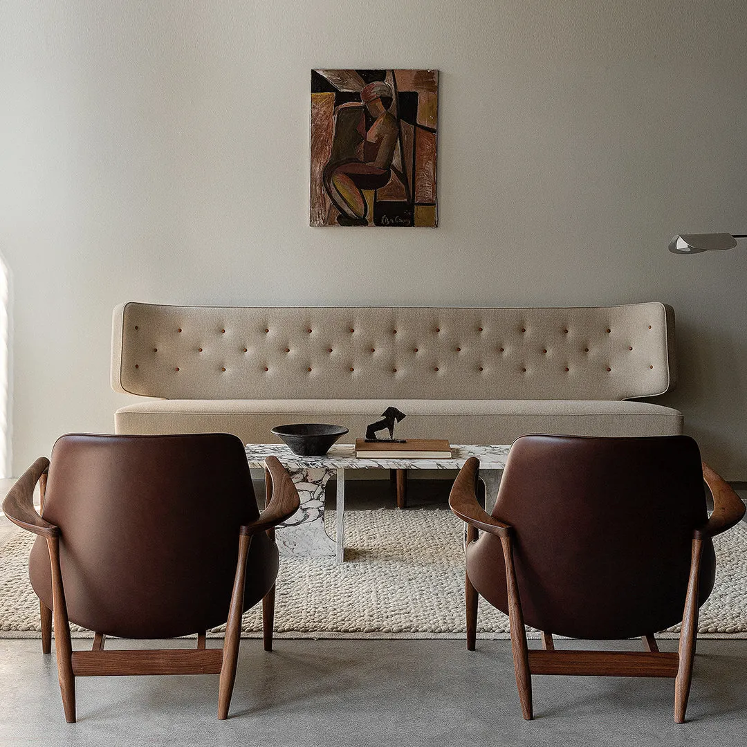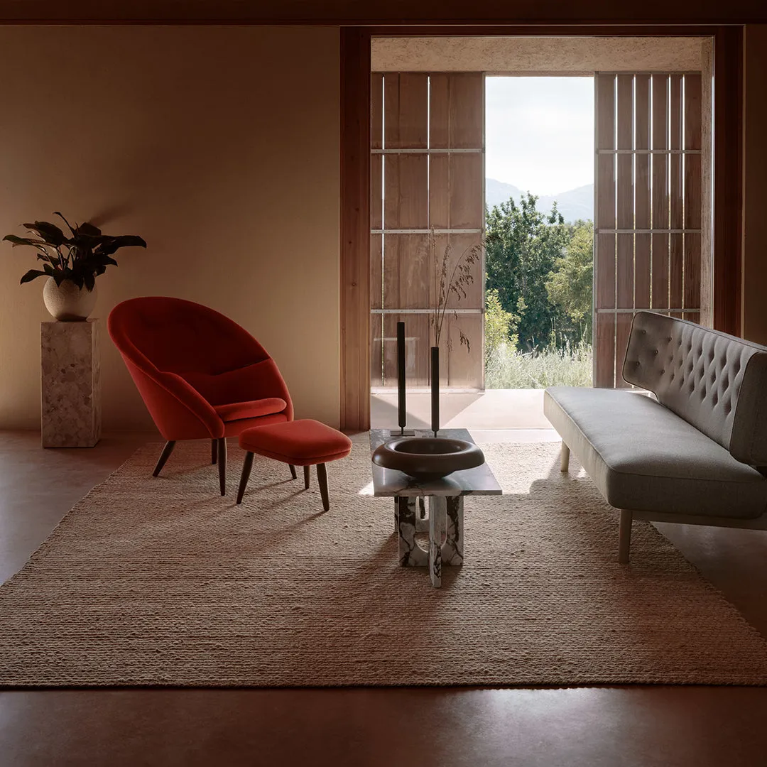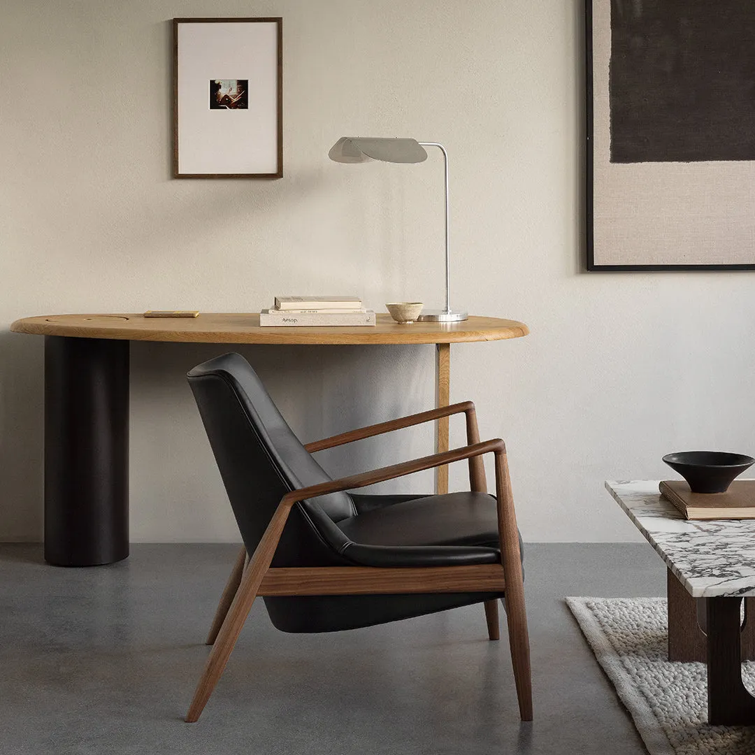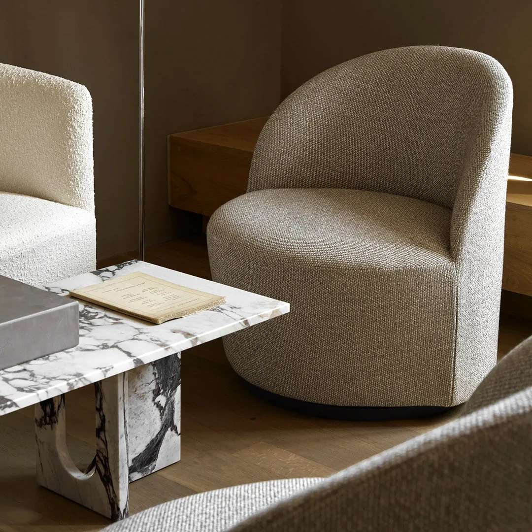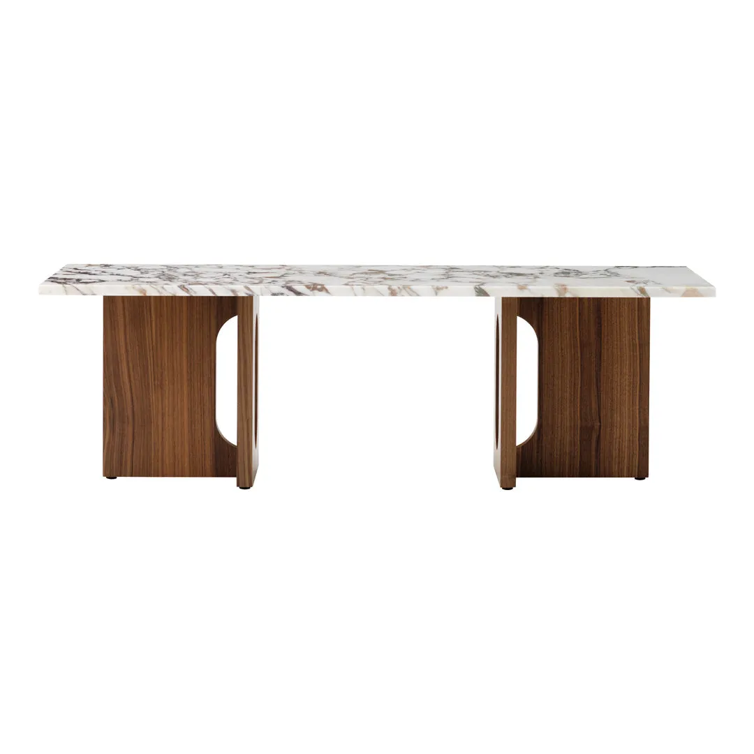 MENU's Androgyne Collection is distinguished by its playful, yet elegant silhouette and considered combination of natural materials. The invention of the Copenhagen-based Norwegian architect and designer Danielle Siggerud, its blend of the masculine and feminine, true androgyny, is what lends the collection its name. Like a magnificent monument, the new Androgyne Dining Table pairs oak and stone to striking effect. The bold and confident take on a dining table amplifies the silhouette of the collection's popular side table to grander proportions thanks to an elegant oak base, available in natural or dark stained, and a table top in corresponding wood or kunis breccia, an artistic blend of stones in warm tones that create subtle texture and add a new dimension to the design. A table not for the faint of heart, it makes a characterful accent in any space, from a domestic dining room to a modern restaurant or office gathering point, and serves multiple functions to bring a timeless quality to the design.