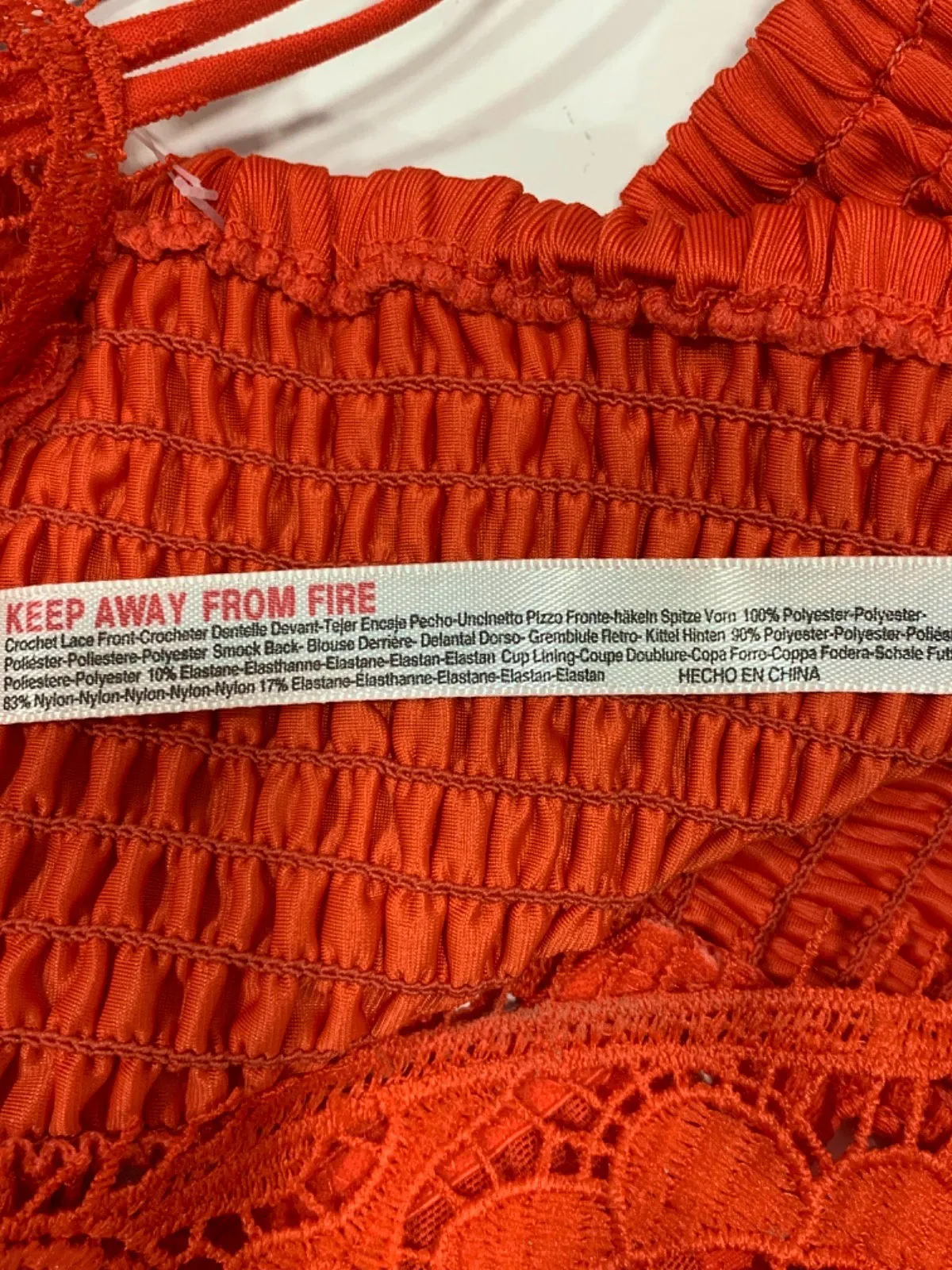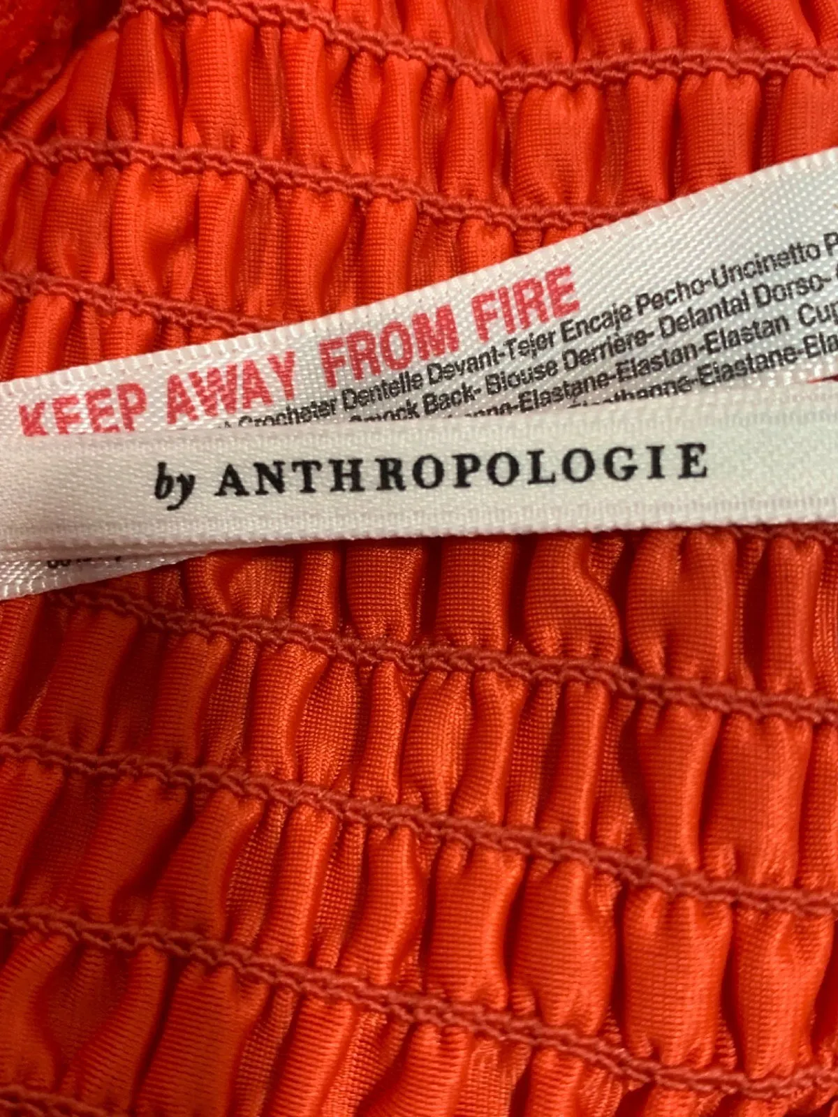 This vibrant red crochet lace crop top by Anthropologie is perfect for summer outings or casual gatherings. The stylish design features intricate lace details and is crafted to provide a comfortable, lightweight fit for warmer weather. The crop top ensures a trendy look paired with high-waisted jeans or skirts. This pre-owned item holds its quality and uniqueness, making it a great addition to your wardrobe.
