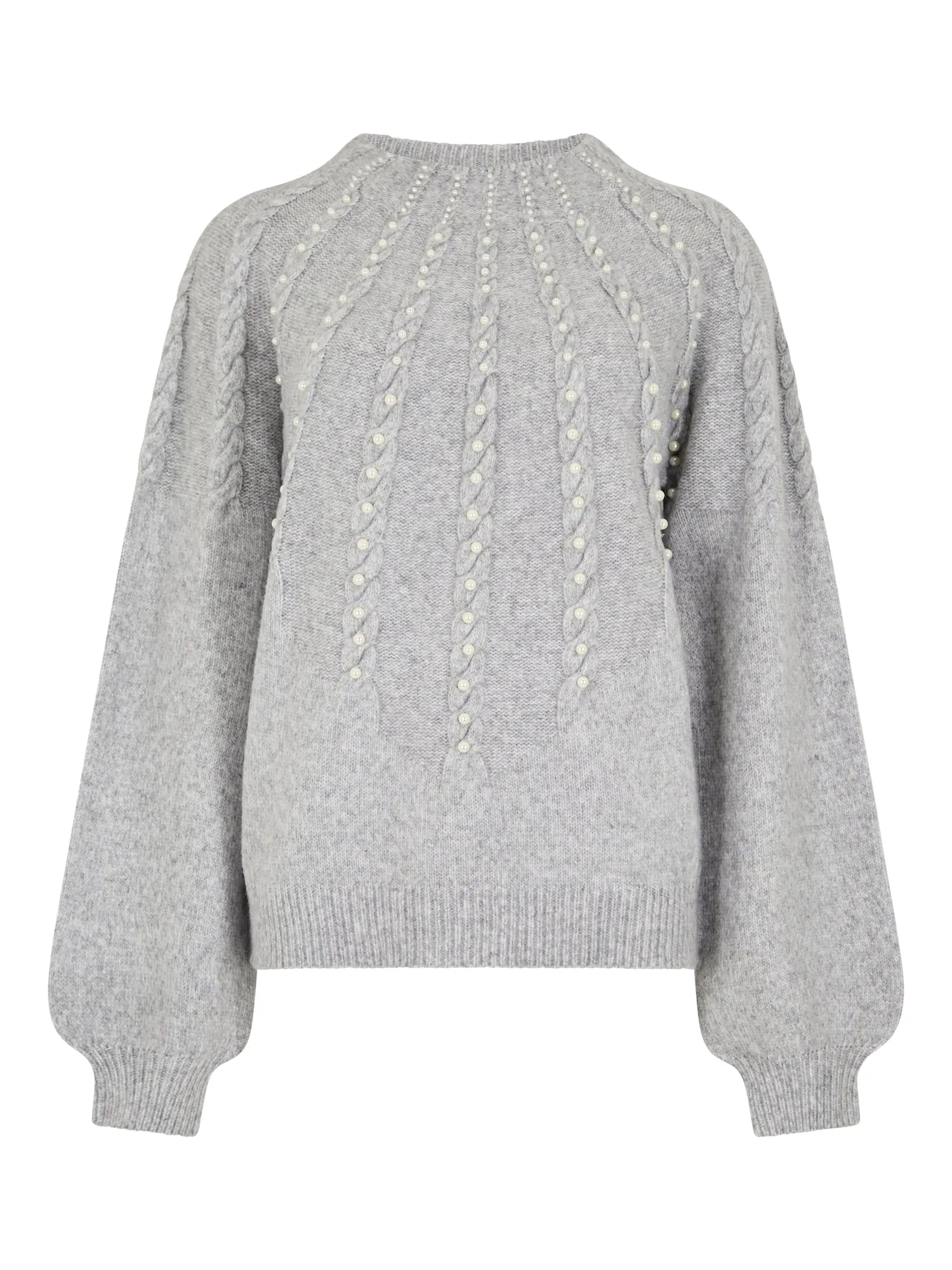 This Apricot Graduated Line Pearl Sweater is both soft and sophisticated. The small cable knit adds a touch of dimension, while the pretty pearl detail elevates the look. Stay warm and stylish with this elegant sweater.