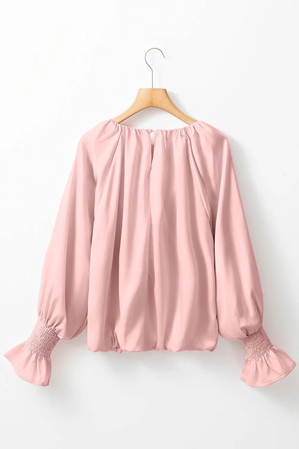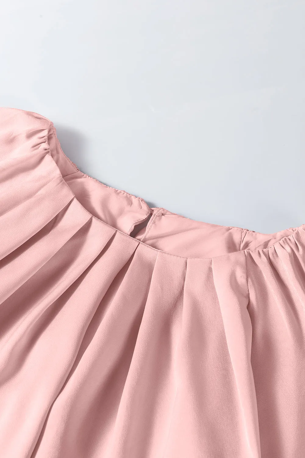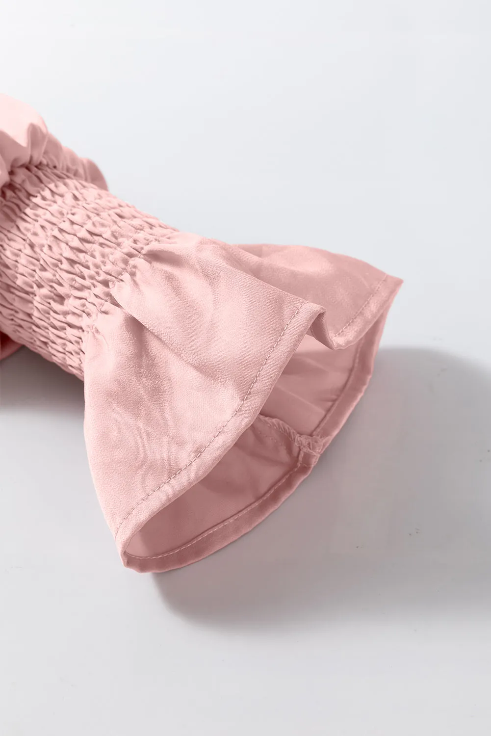 The delicate pleats create a beautiful texture, bringing dimension to your look, while the flounce sleeves add a feminine and trendy flair. Whether you're dressing for a day at the office or a night out, this blouse will keep you feeling sophisticated and chic.