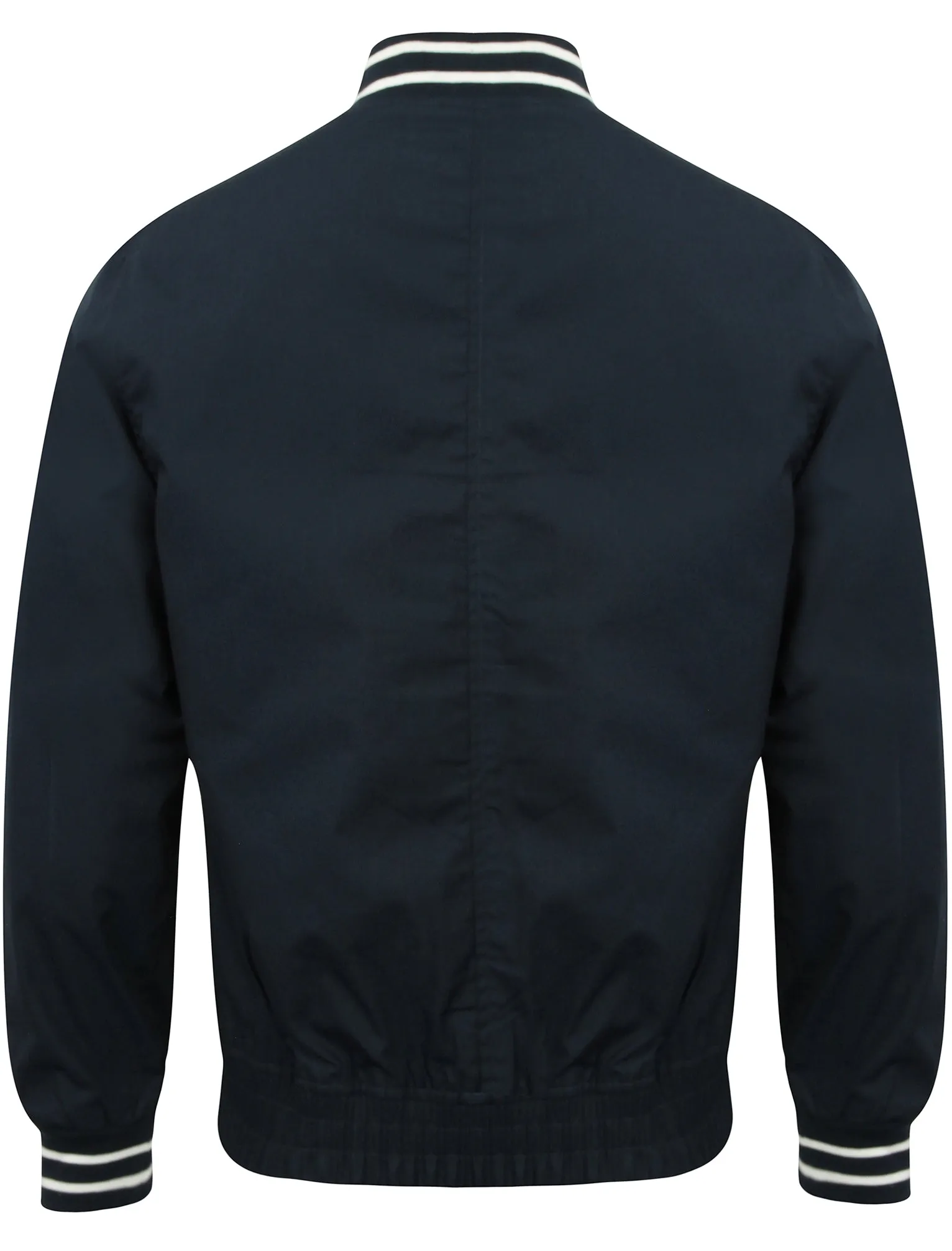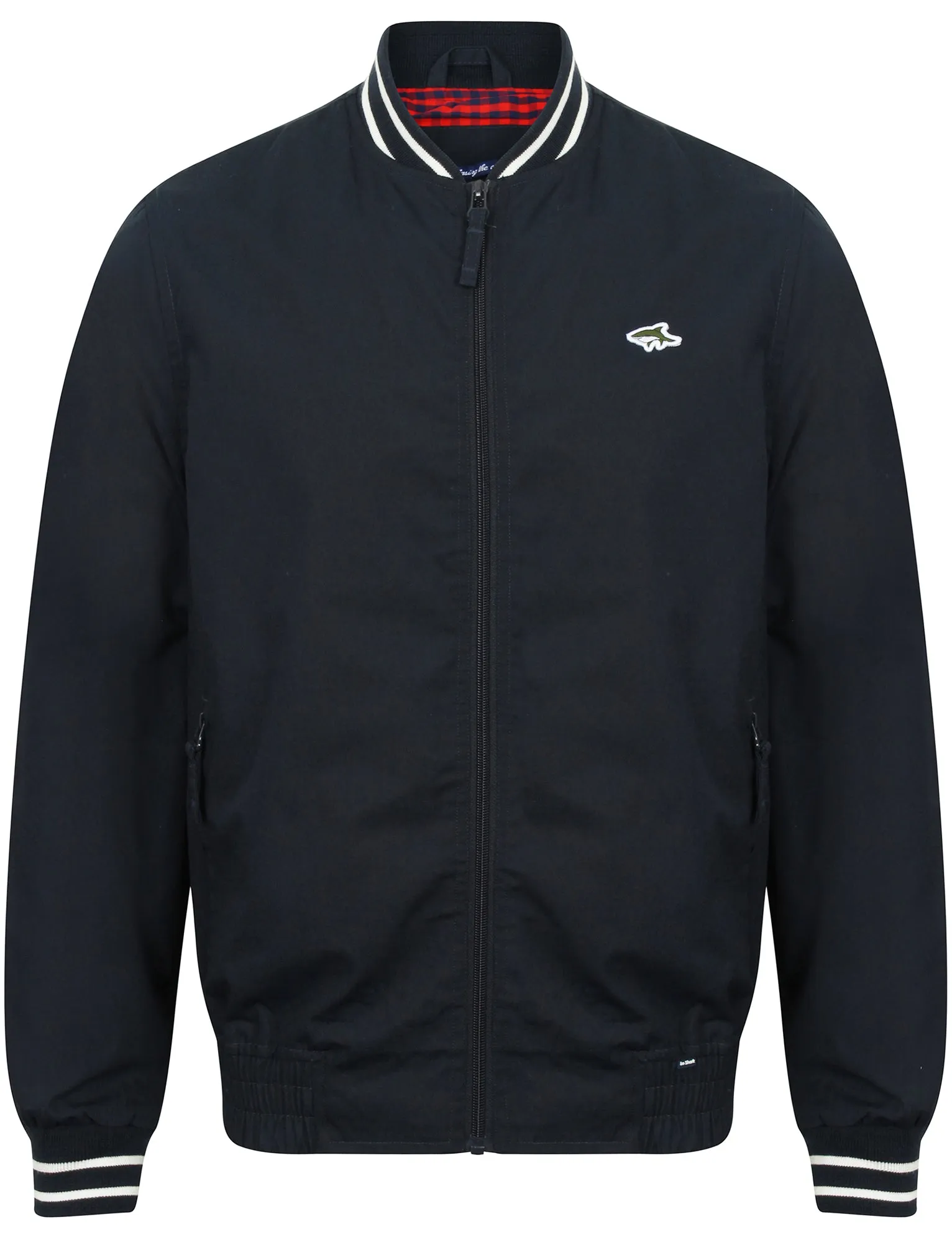 For a mod inspired approach to the new season, the ‘Ardsley’ ribbed detail cotton bomber jacket in true navy is perfect for throwing on. Created by Le Shark, this outerwear piece is a cross between the classic Harrington and a sports style bomber, with its cotton twill construction mixed with a baseball ribbed collar and sleeve cuffs, with elasticated hem. This has a front zip through fasten with two zip fasten side pockets and is finished off with the embroidered logo to the chest. For an effortless look, simple pair with a polo shirt and jeans to complete the look.