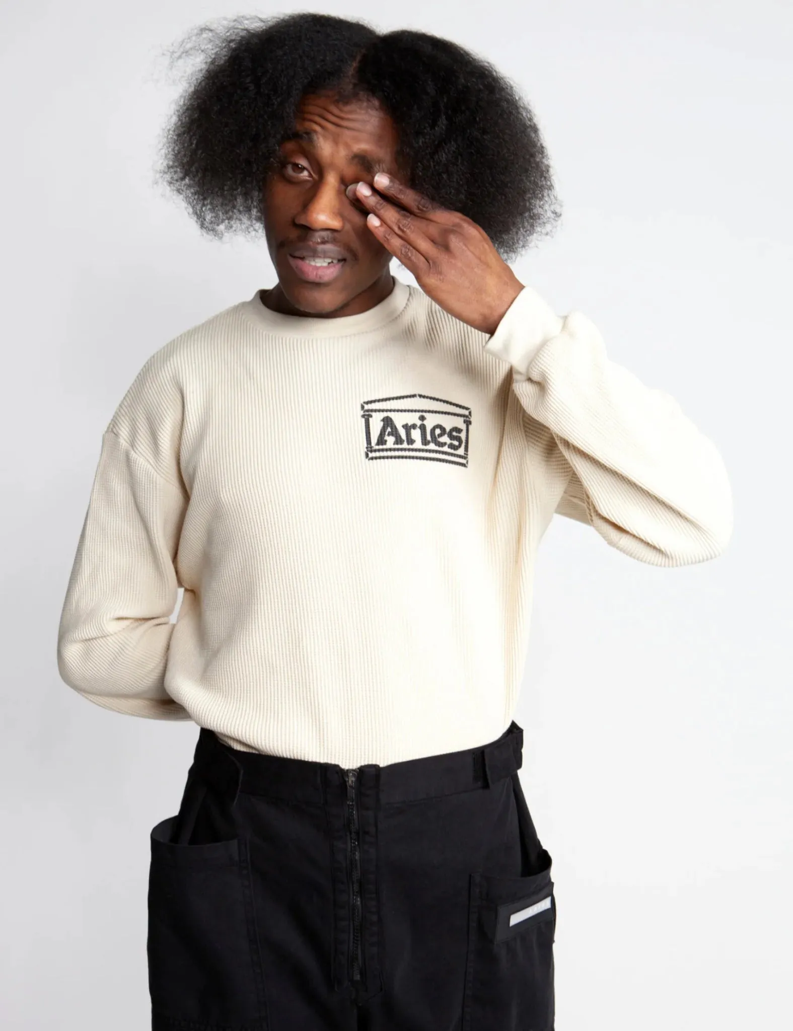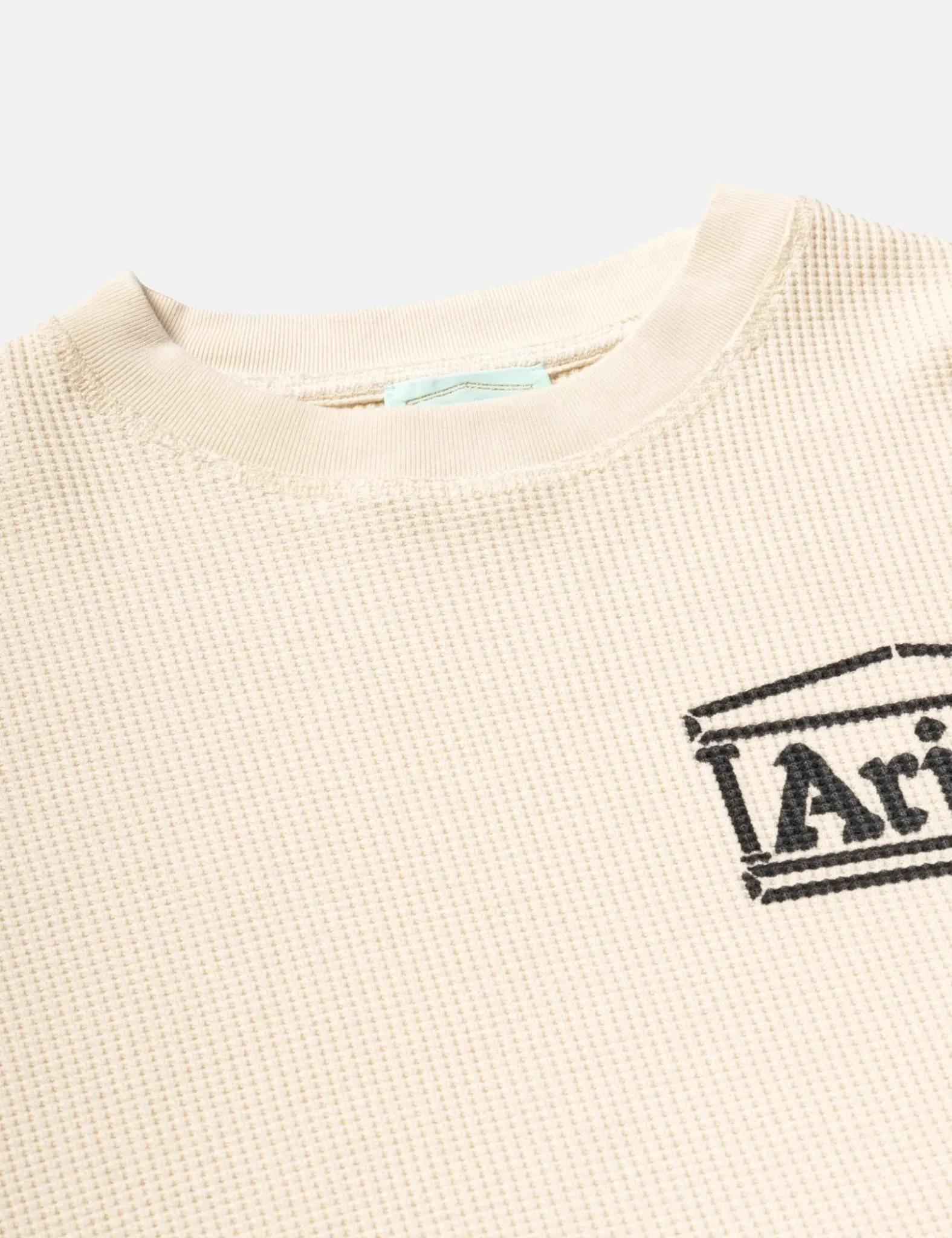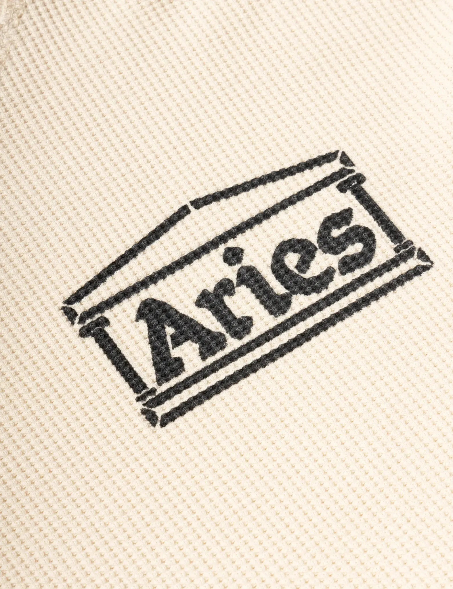 Get ready to be cozy and cool in this Waffle long sleeve t-shirt in ecru. This unisex long sleeve tee is crafted from soft cotton waffle jersey and features the iconic Aries Stencil Temple screen print on the chest.