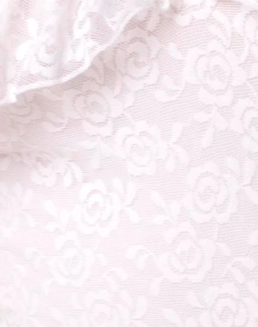 Opt for ultra femme style and find frills in the Asahan bodice. In a super sweet white rose lace with an off the shoulder sweetheart neckline and cropped sheer sleeves. Looks super hot when paired with some skinnies, western style belt and chain strap bag.