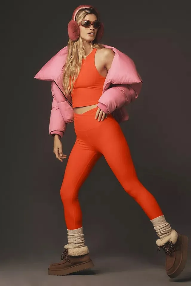 The curve-enhancing yoga legging your friends keep talking about. Active legging with overlap waistband, made from our incredibly soft Spacedye fabric. This pair of high-waisted midi leggings is a fan favorite (and bestseller, season after season) for the way it shows off and flatters all body shapes, and is versatile enough for both working out or vegging out. We love this legging for travel, too. Pair it with the matching bralet to complete the look.