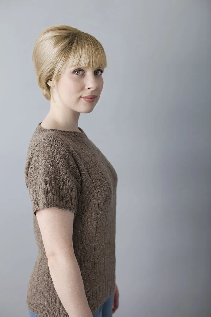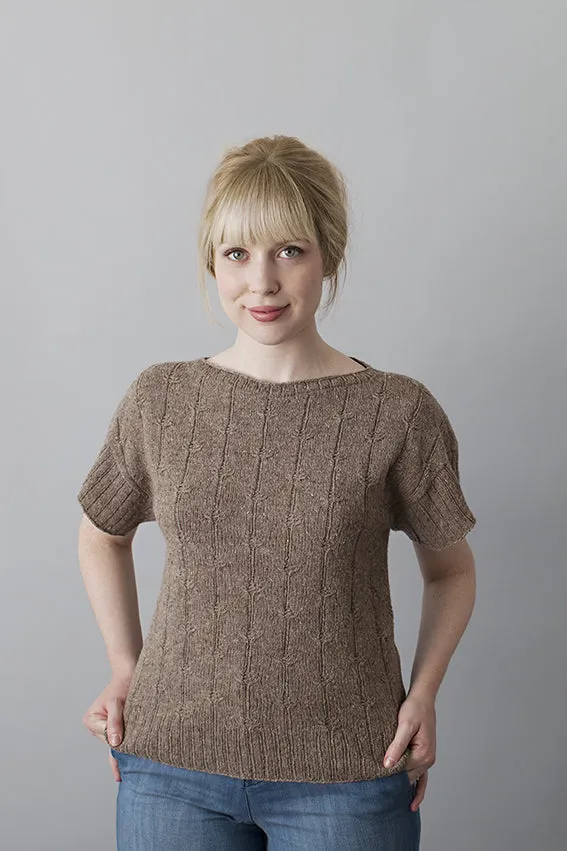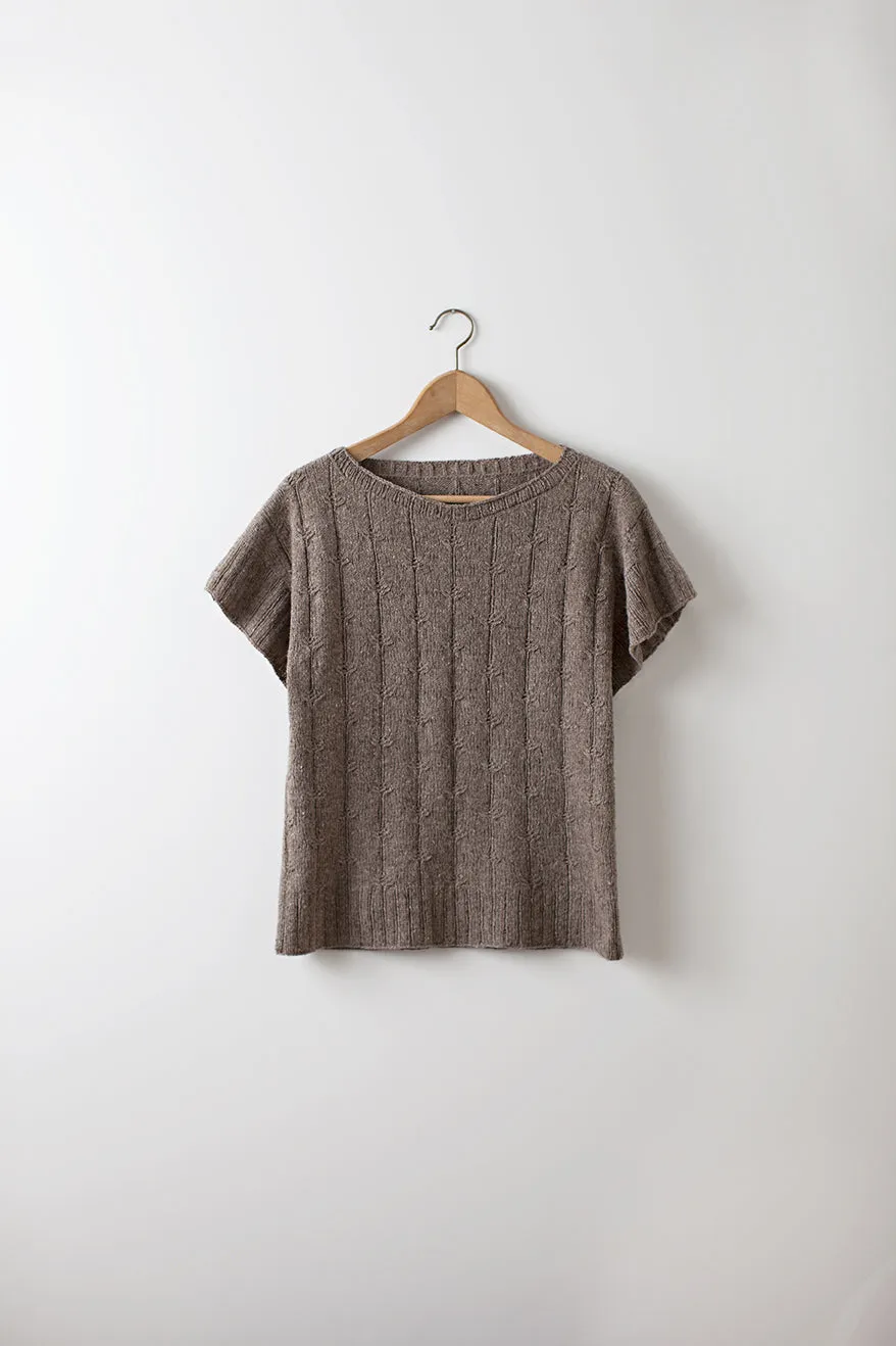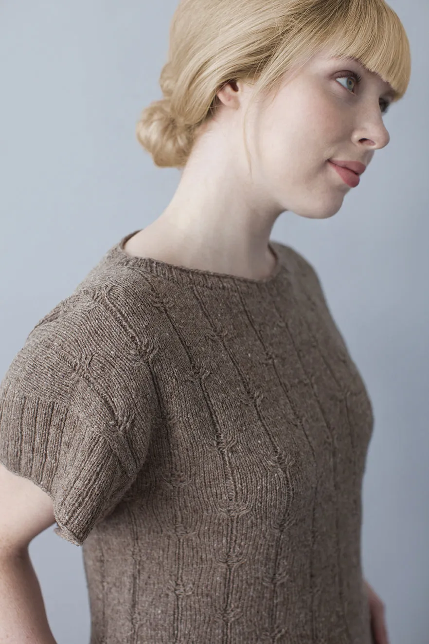 “This design draws inspiration from both the new and old. I was intrigued by the modernity and drape of an oversized dolman tee, and I also loved the soft femininity of the simple, delicate prints of liberty cotton and vintage summer dresses. This pullover combines the two into the best of both worlds: a gentle, fern-like, allover cable motif joins with a loose and wonderfully drapey shape to create the perfect spring or summer sweater.” – Bristol Ivy