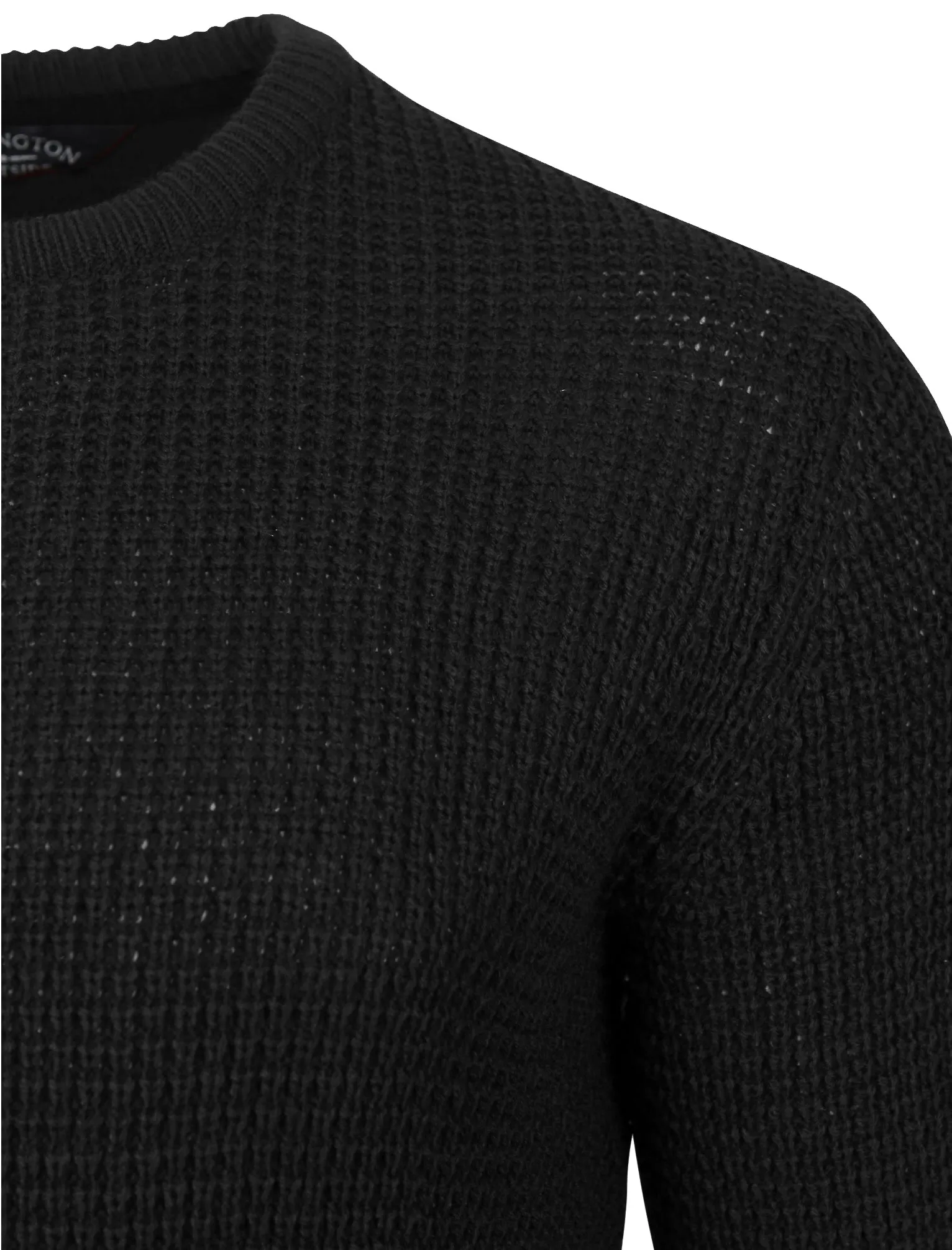 For everyday layering, the 'Auldhome' waffle knit jumper in black will ensure you're sorted for the A/W months. The weave is slightly loose which gives this more stretch, and is a soft and comfortable piece for timeless wear. A plain style with no fussy detailing, this simple waffle stitch style is perfect for layering up. With a crew neckline and ribbed hem and cuffs, we think this pullover will compliment denim jeans or worn on top of a button down shirt for a smarter look.