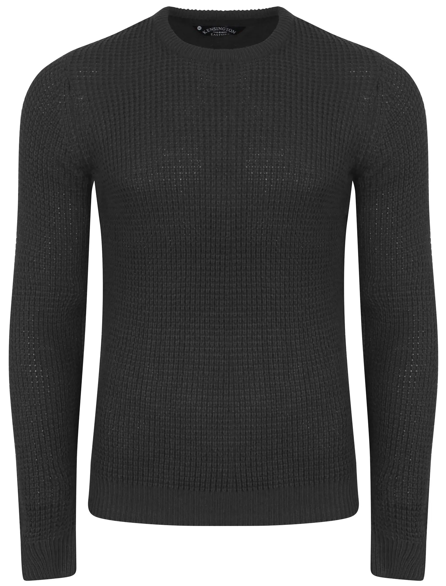 For everyday layering, the 'Auldhome' waffle knit jumper in charcoal will ensure you're sorted for the A/W months. A plain style with no fussy detailing, this simple waffle stitch style is perfect for layering up. The weave is slightly loose which gives this more stretch, and is a soft and comfortable piece for timeless wear. With a crew neckline and ribbed hem and cuffs, we think this pullover will compliment denim jeans or worn on top of a button down shirt for a smarter look.