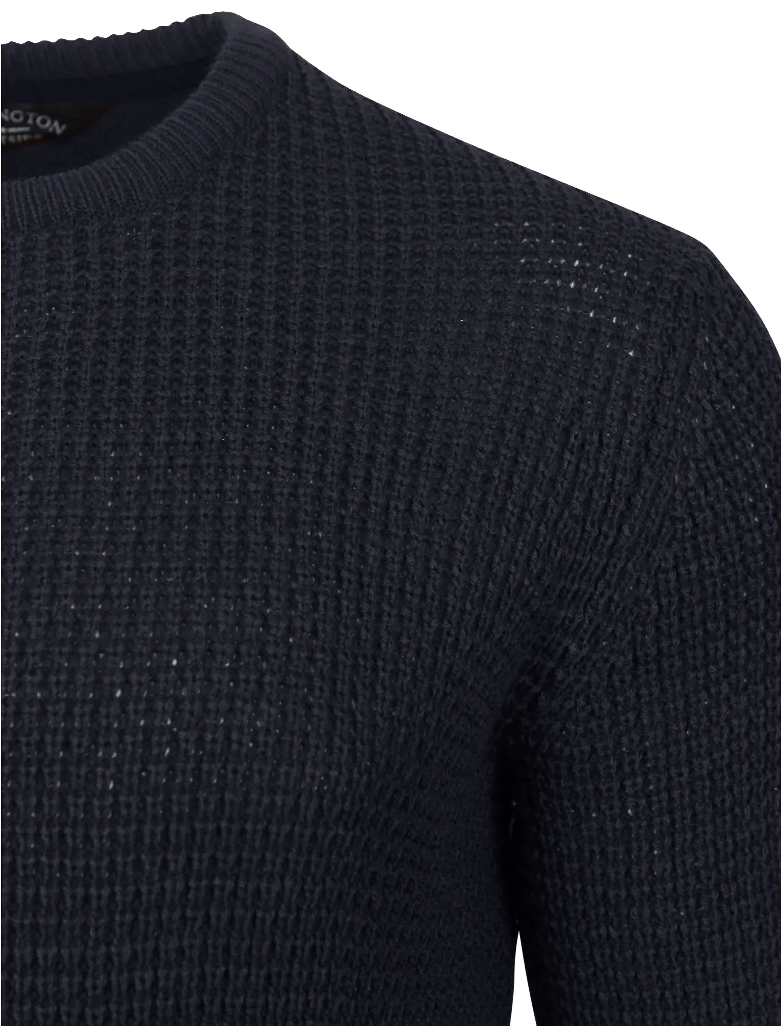 For everyday layering, the 'Auldhome' waffle knit jumper in dark navy will ensure you're sorted for the upcoming colder months. A plain style with no fussy detailing, this simple waffle stitch style is perfect for layering up. The weave is slightly loose which gives this more stretch, and is a soft and comfortable piece for timeless wear. With a crew neckline and ribbed hem and cuffs, we think this pullover will compliment denim jeans or worn on top of a button down shirt for a smarter look.