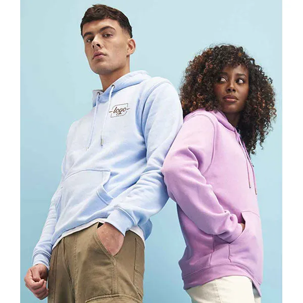 This AWDis Organic Hoodie features a soft cotton faced fabric and brushed back fleece for ultimate comfort. The drop shoulder style, double fabric hood with self colour drawcord, front pouch pocket, and ribbed cuffs and hem add practicality and style.
