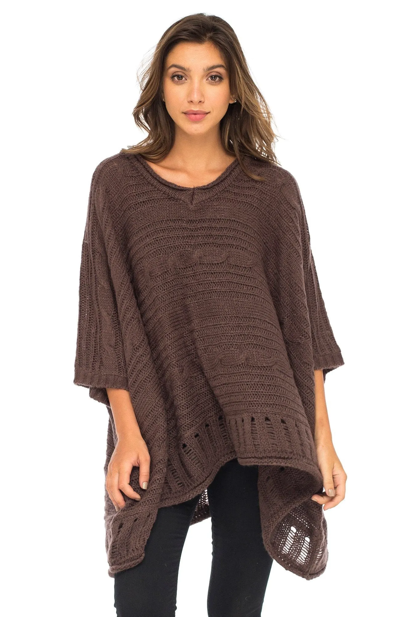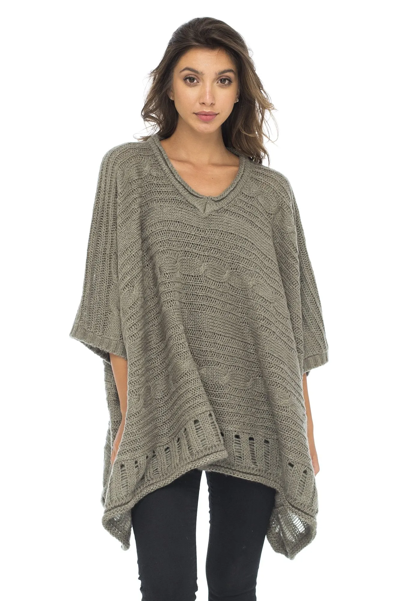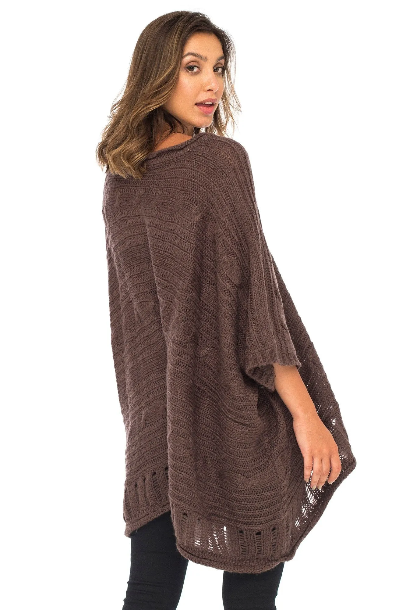 This soft lightweight v-neck knit poncho sweater will quickly become your favorite fall and winter knitted cape. With the warmth of a sweater and the style of a poncho, it is a true fashion staple!