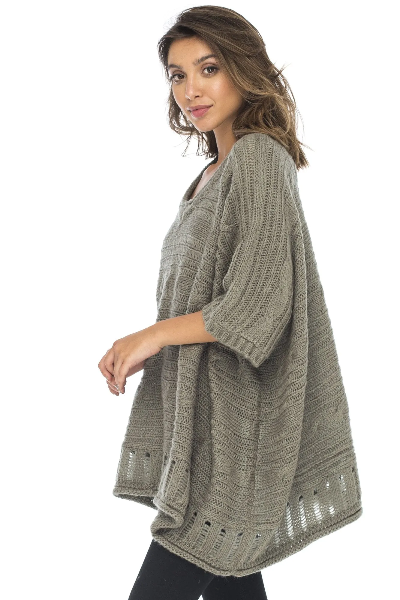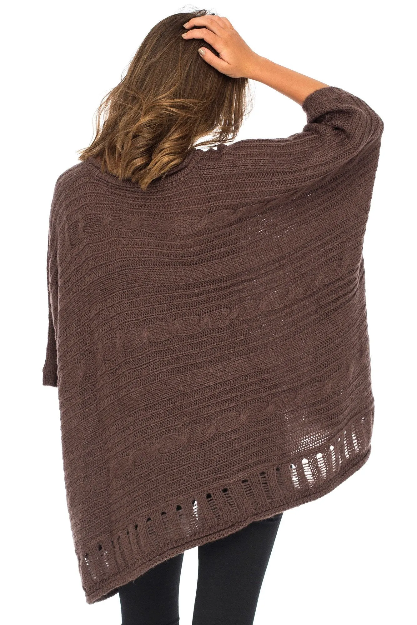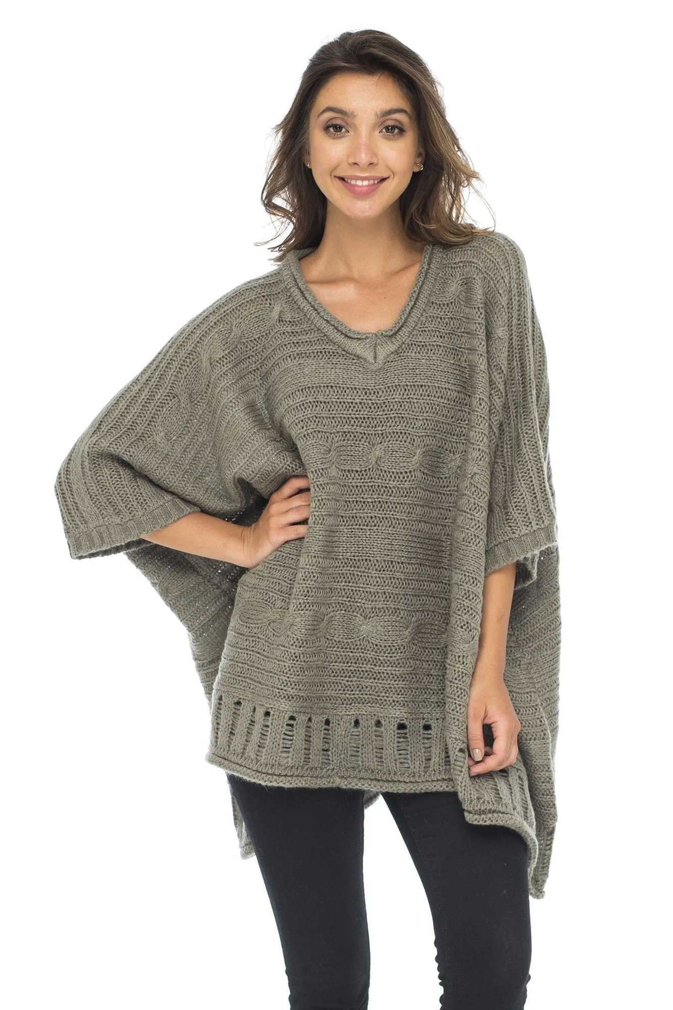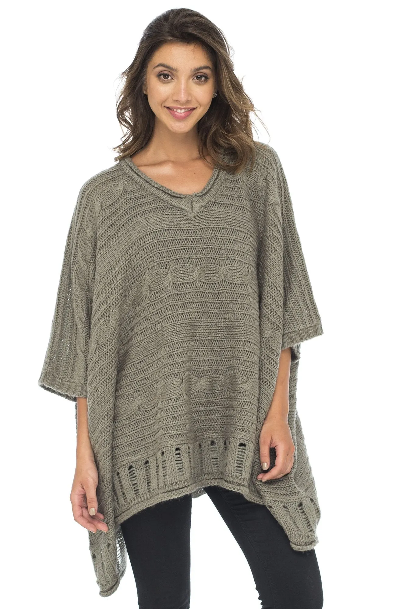 This soft lightweight v-neck knit poncho sweater will quickly become your favorite fall and winter knitted cape. With the warmth of a sweater and the style of a poncho, it is a true fashion staple!