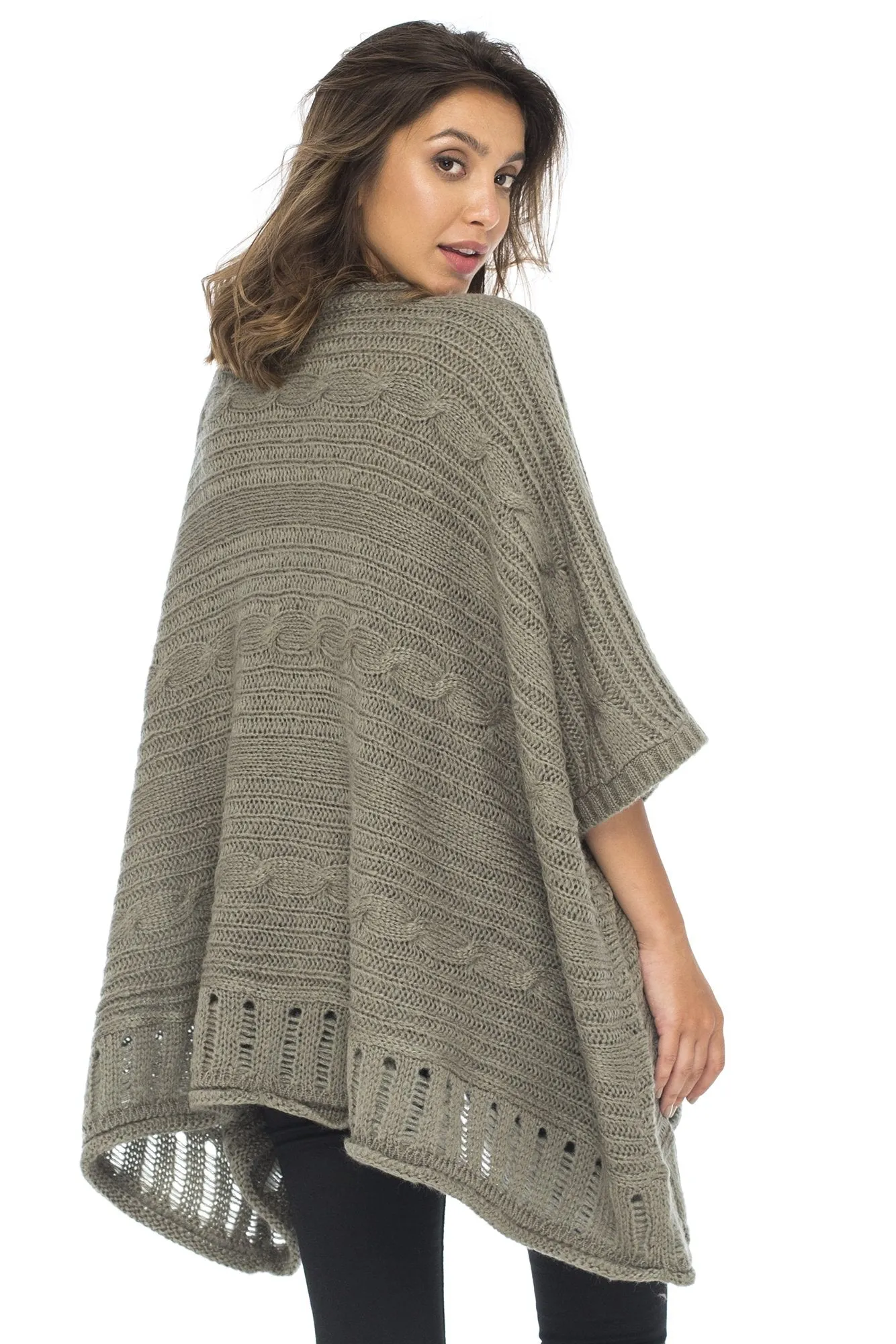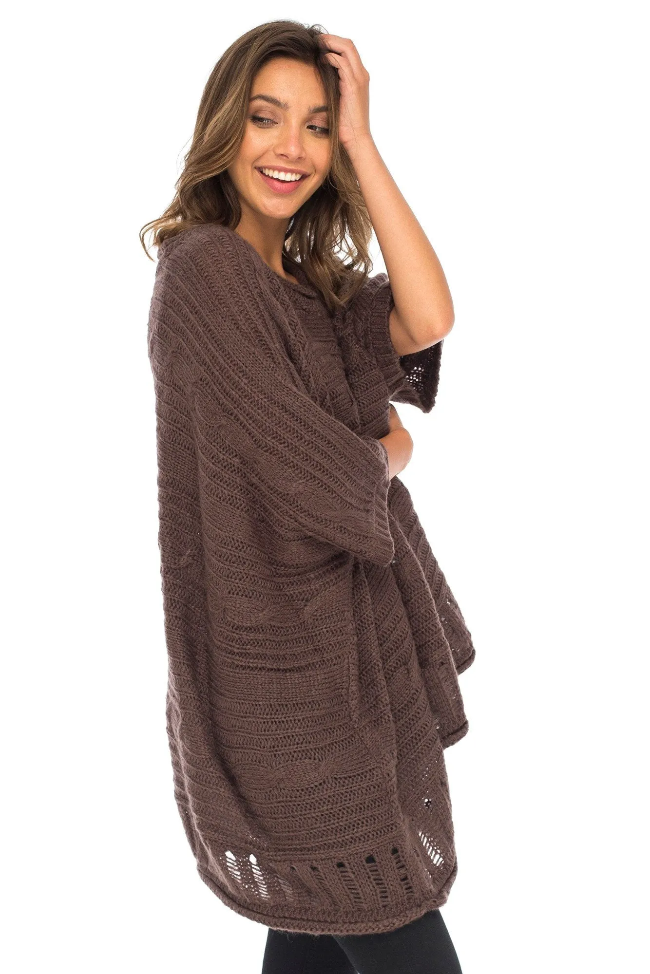Made from luxuriously soft-as-cashmere acrylic knit, this boho inspired cable knit poncho cape resists wrinkles and the fabric is easy care. Perfect for travel, keep one at the office, or in the car for when you need extra warmth