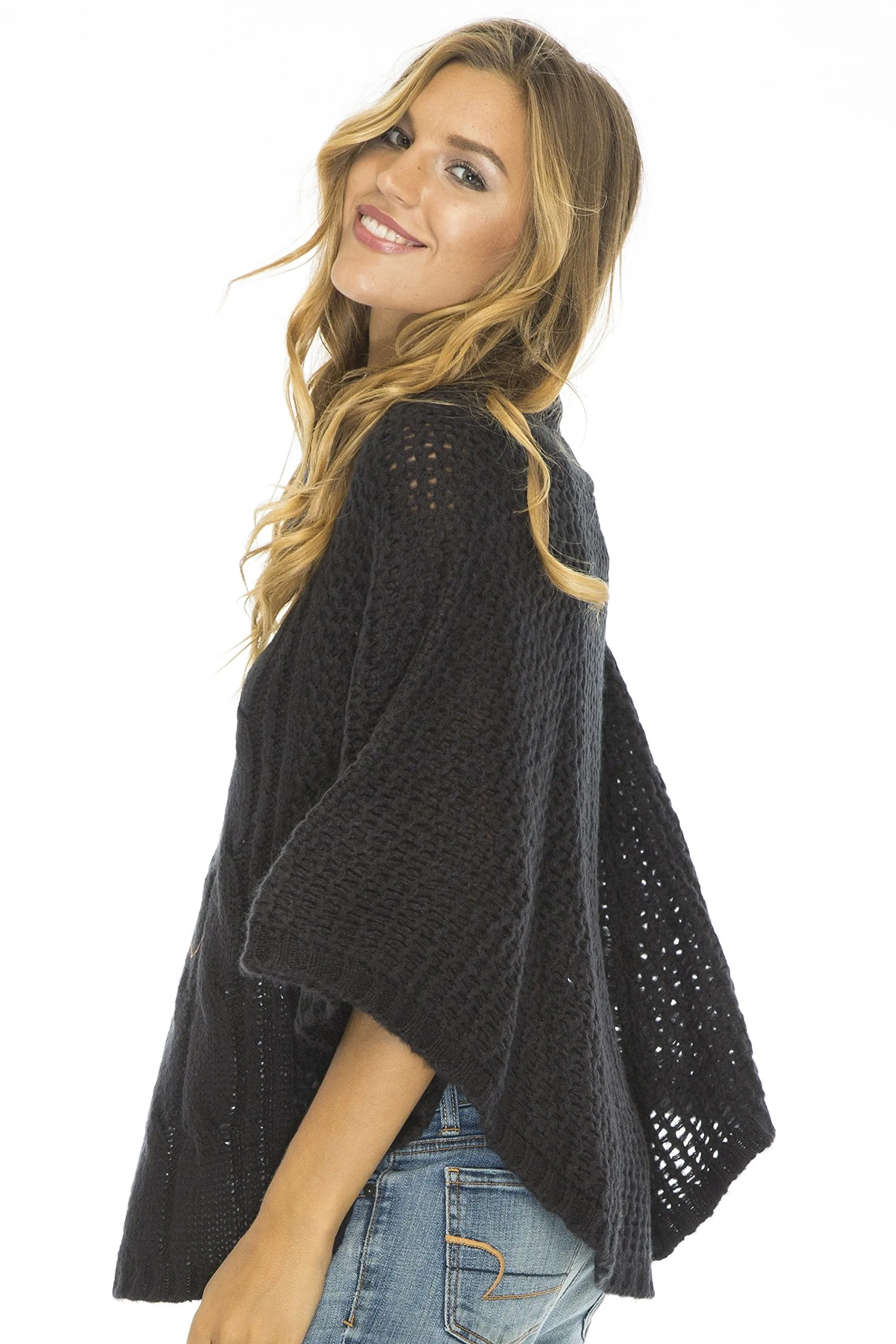 - Relaxed cowl turtleneck cradles the neck for a little extra warmth and coverage; solid cable stitch on boho poncho sweater front changes to an open square stitch on the sides and back for see-through allure