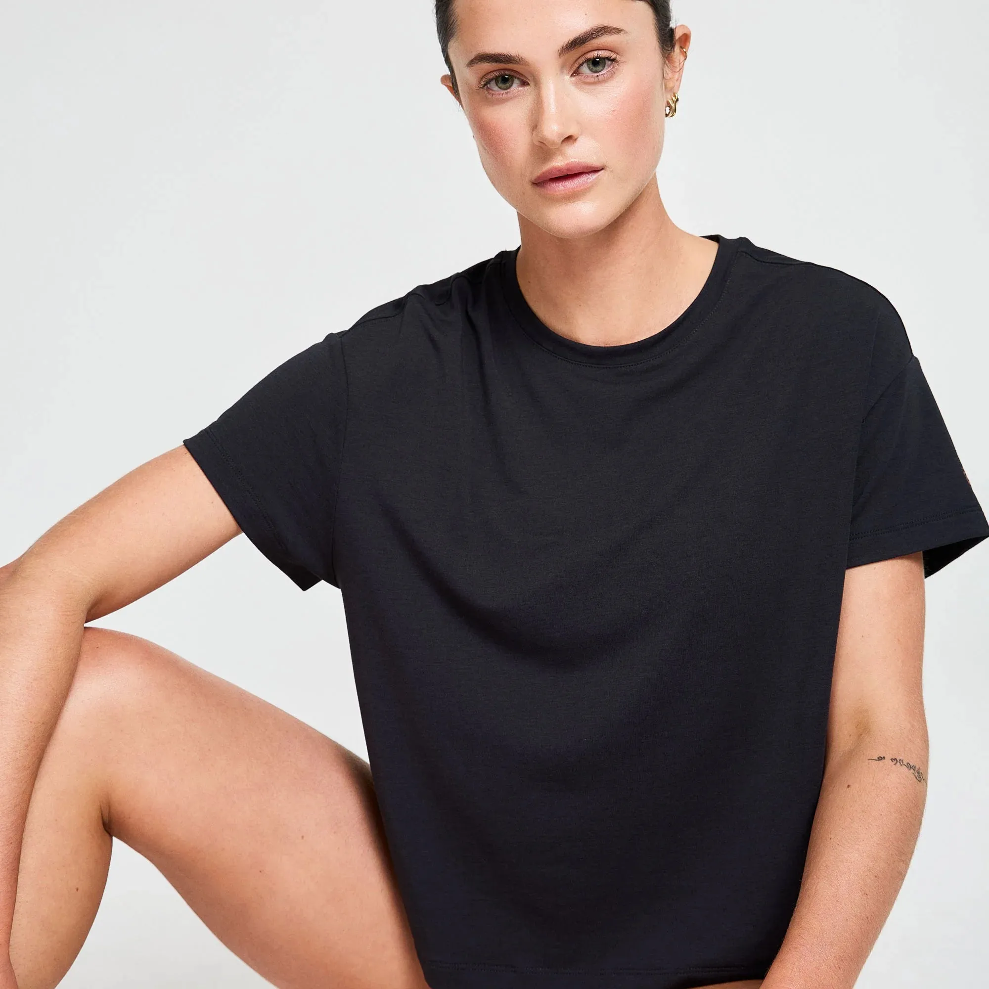 Designed to be incorporated into the everyday, this relaxed Tshirt with stepped hem is in super soft TENCEL™fabric and can be layered and tucked over sports wear or worn loose as a perfect all rounder.