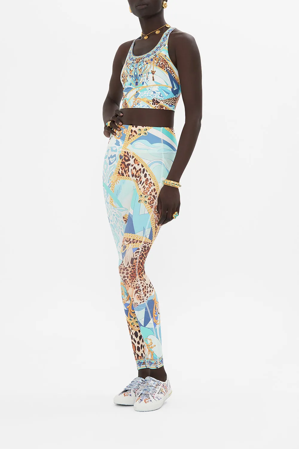 The Sky Cheetah Banded Racerback Crop delves into mesmerising swirls of sky blue hues and animal accents. Unleash the ultimate in performance wear with this luxury sports bra designed with compression support and anti-pilling technology. The fitted silhouette ensures a secure and supportive fit, allowing you to focus on your fitness goals in confidence. The scooped neckline beautifully complements the racer back design, offering both style and functionality. To enhance the fit, a generous underbust band shapes and compliments your figure, providing the perfect balance and support. Lovingly handcrafted, designed in Australia. Explore more from the Amore Mio collection.