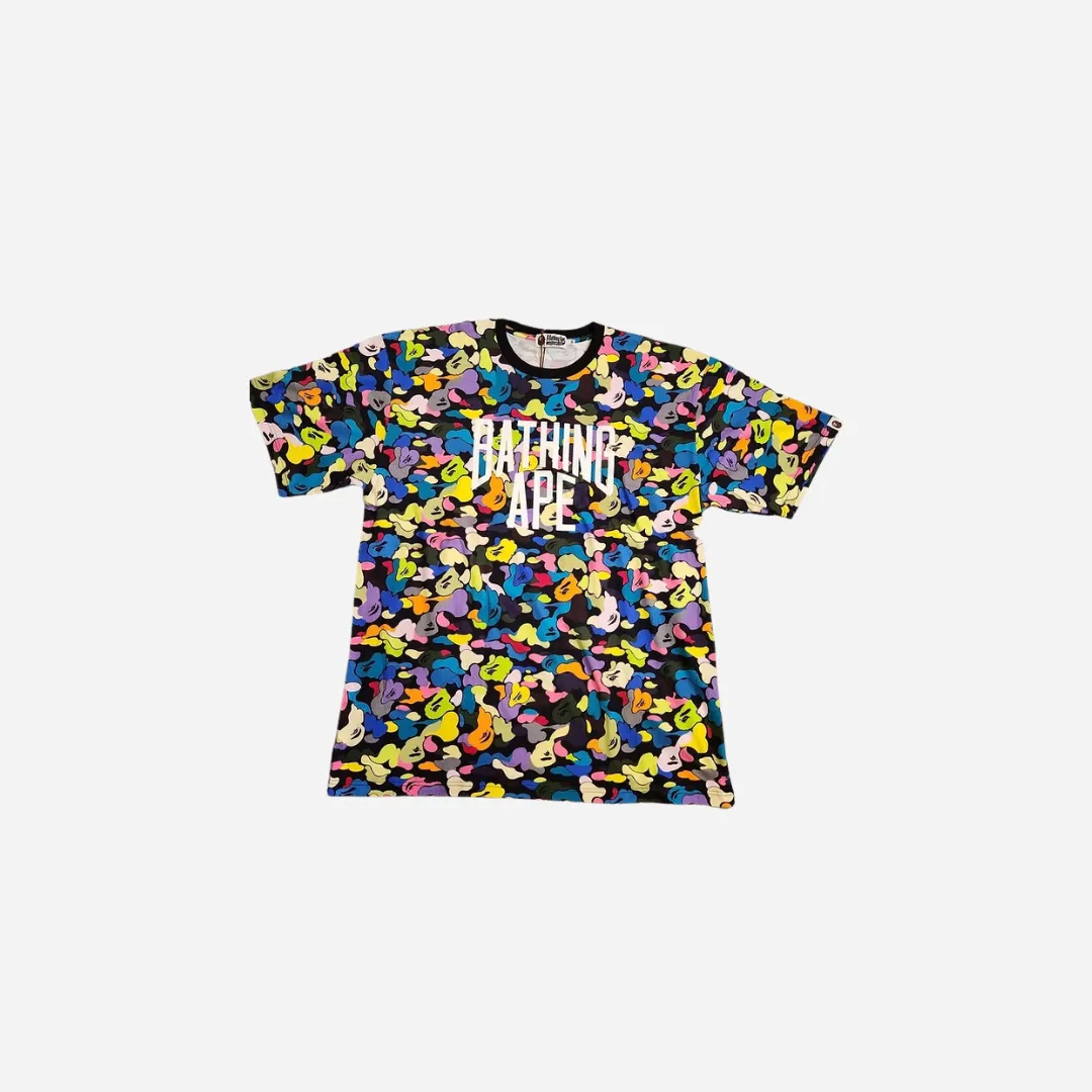 The BAPE Multi Camo NYC Logo Tee in multicolor/black is a striking fusion of urban style and streetwear heritage. Crafted from high-quality cotton, this tee boasts a vibrant, multi-colored camouflage pattern—a hallmark of BAPE’s iconic design language. The front features a bold NYC logo, showcasing BAPE’s collaboration with New York City’s cultural scene. The shirt’s relaxed fit ensures comfort and versatility, making it suitable for casual outings or as a standout piece in a layered outfit. The black base color contrasts sharply with the multicolor camo, creating a visually dynamic piece that captures attention. Ideal for fashion enthusiasts who appreciate the blend of bold graphics and streetwear sophistication, this tee is a testament to BAPE’s innovative approach to design.