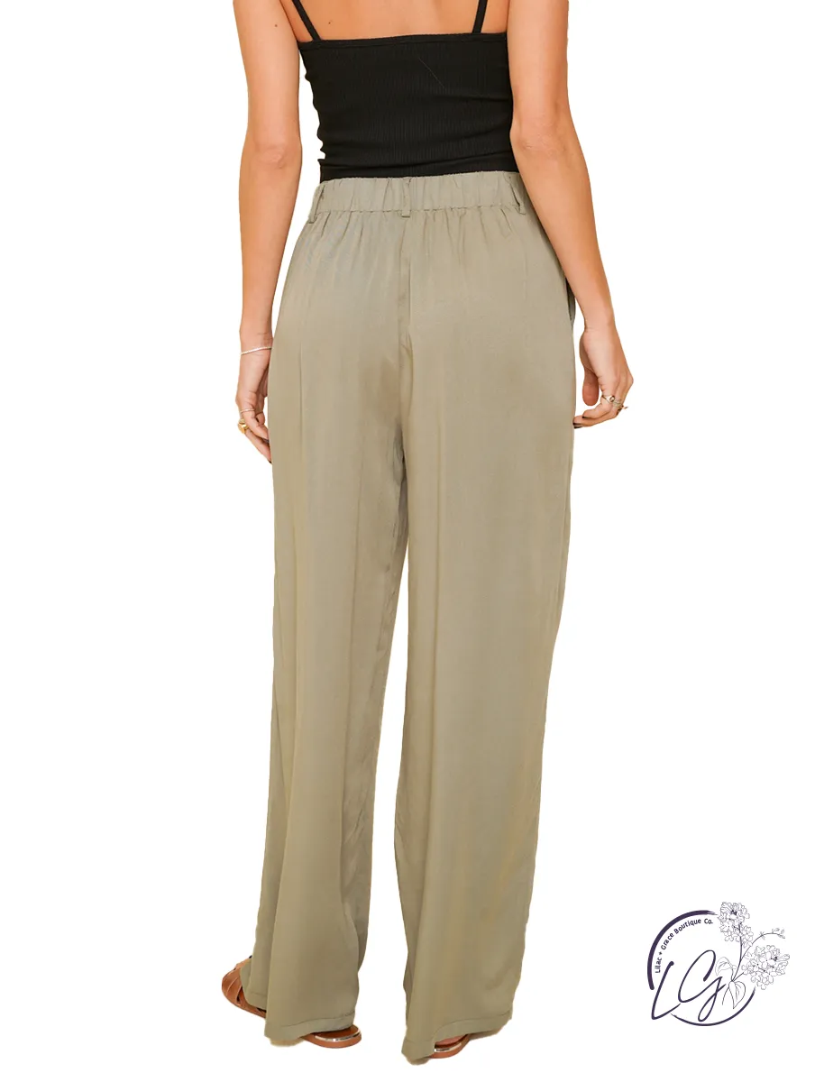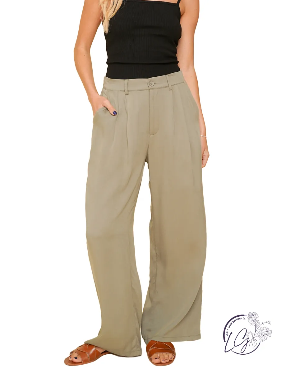 Soft Fabric Pleated Details Wide Leg Trousers with Pockets