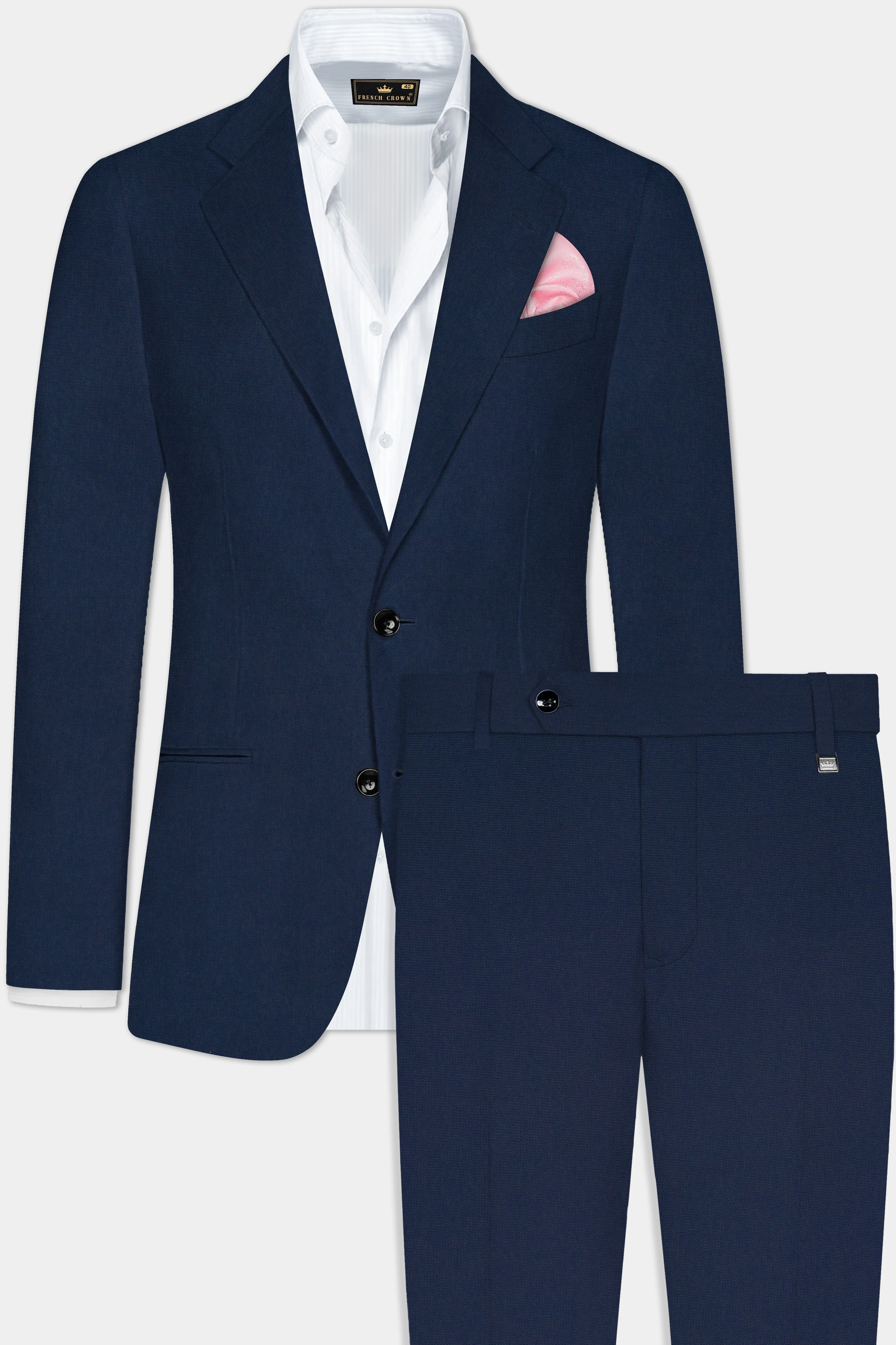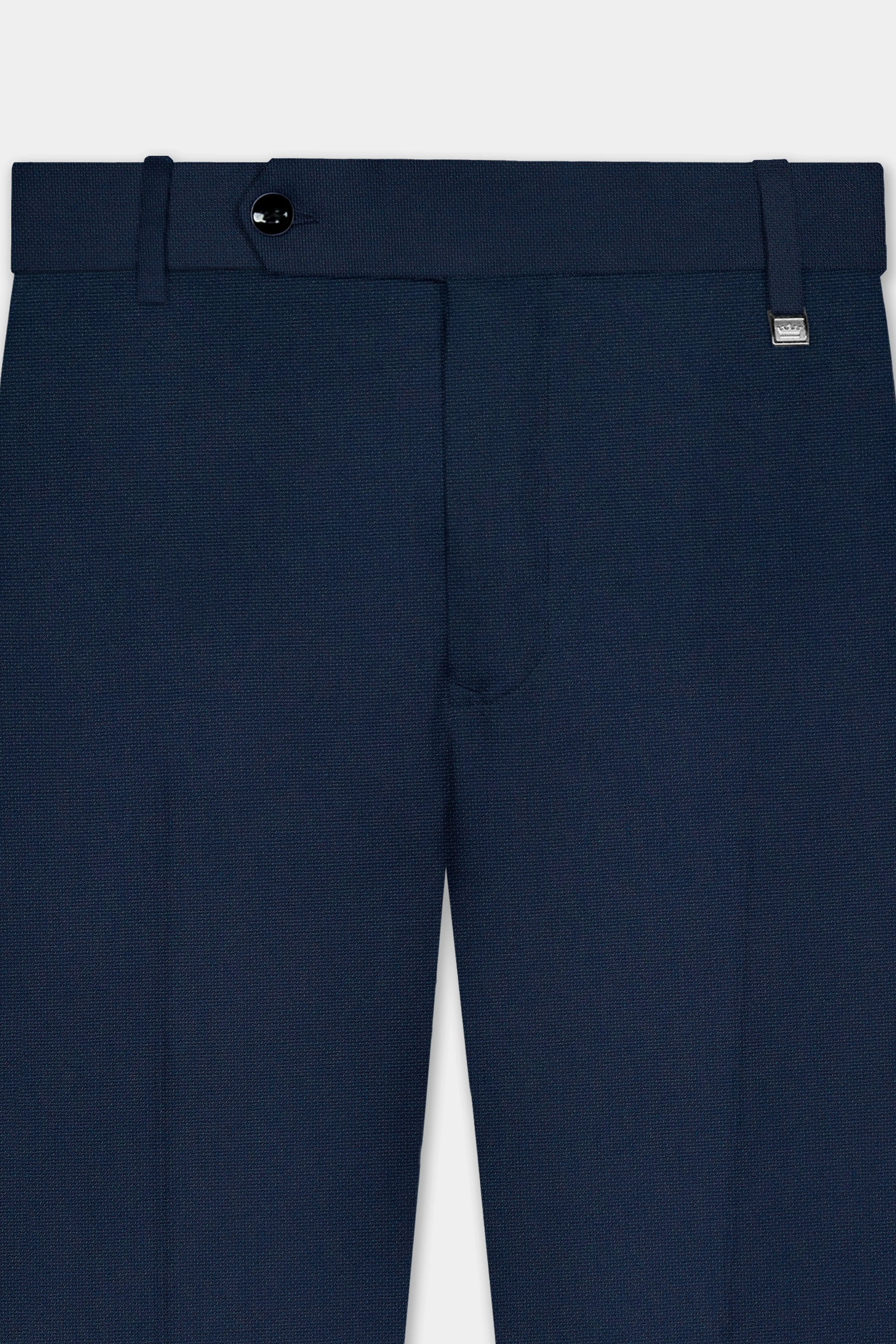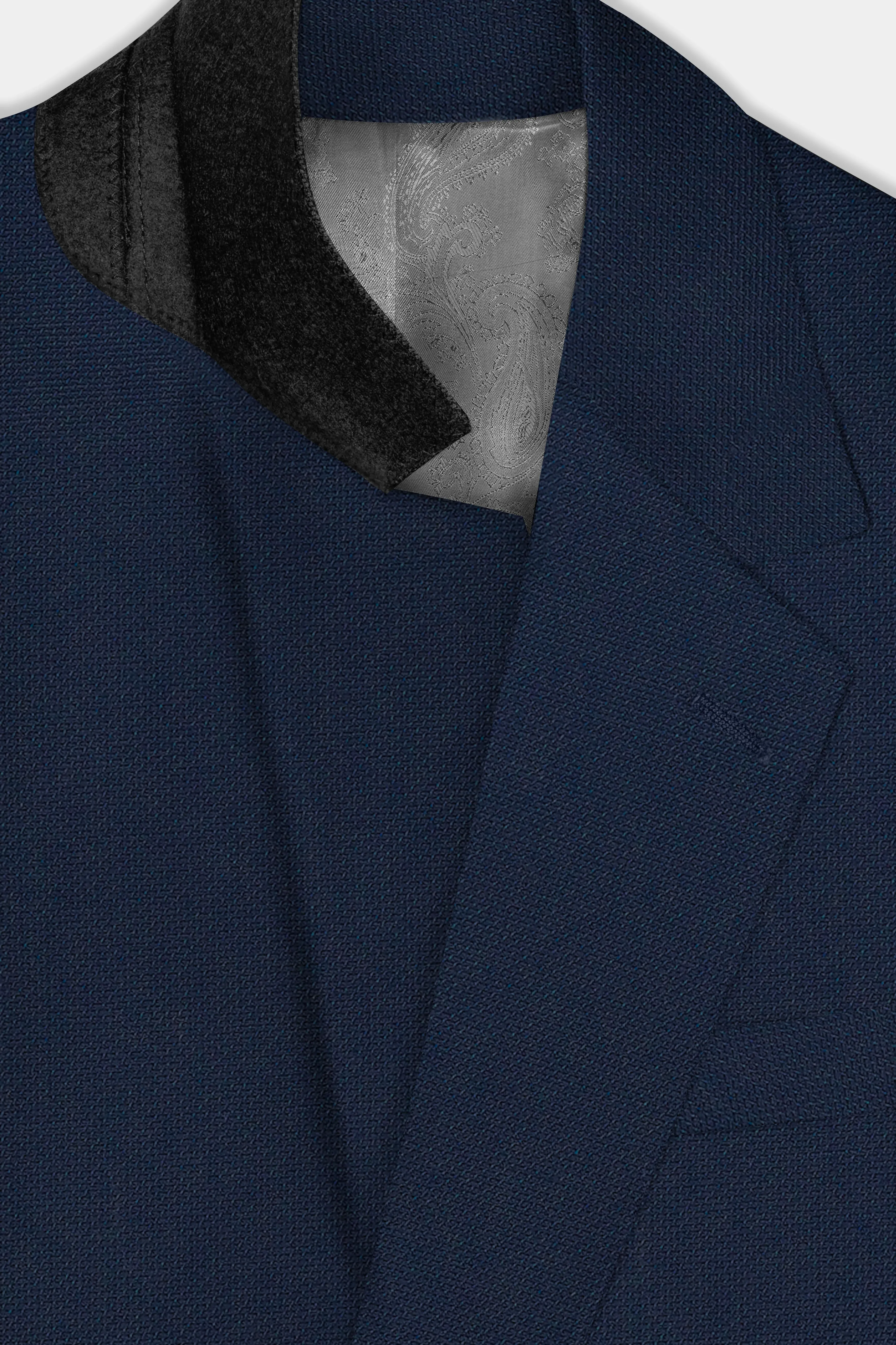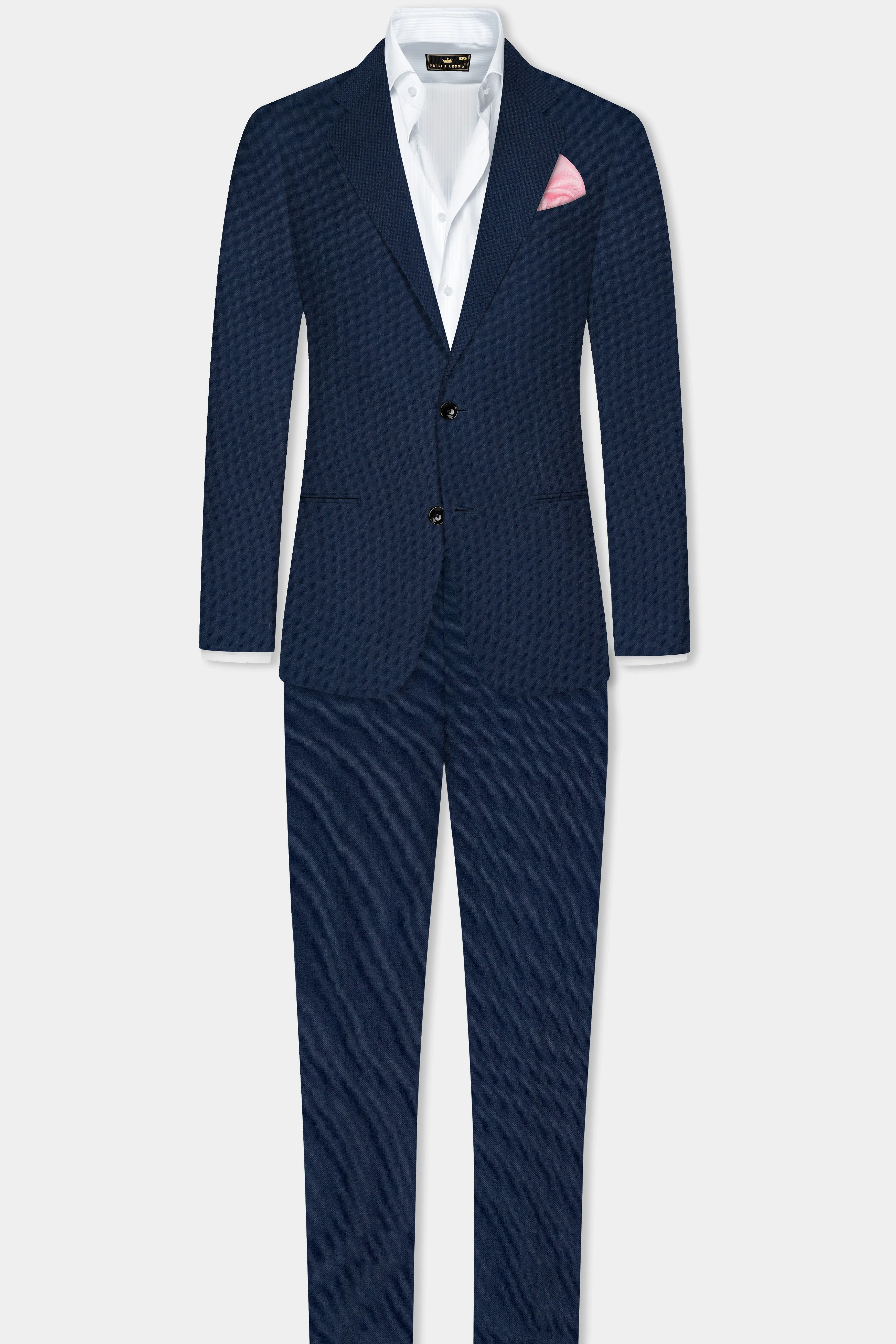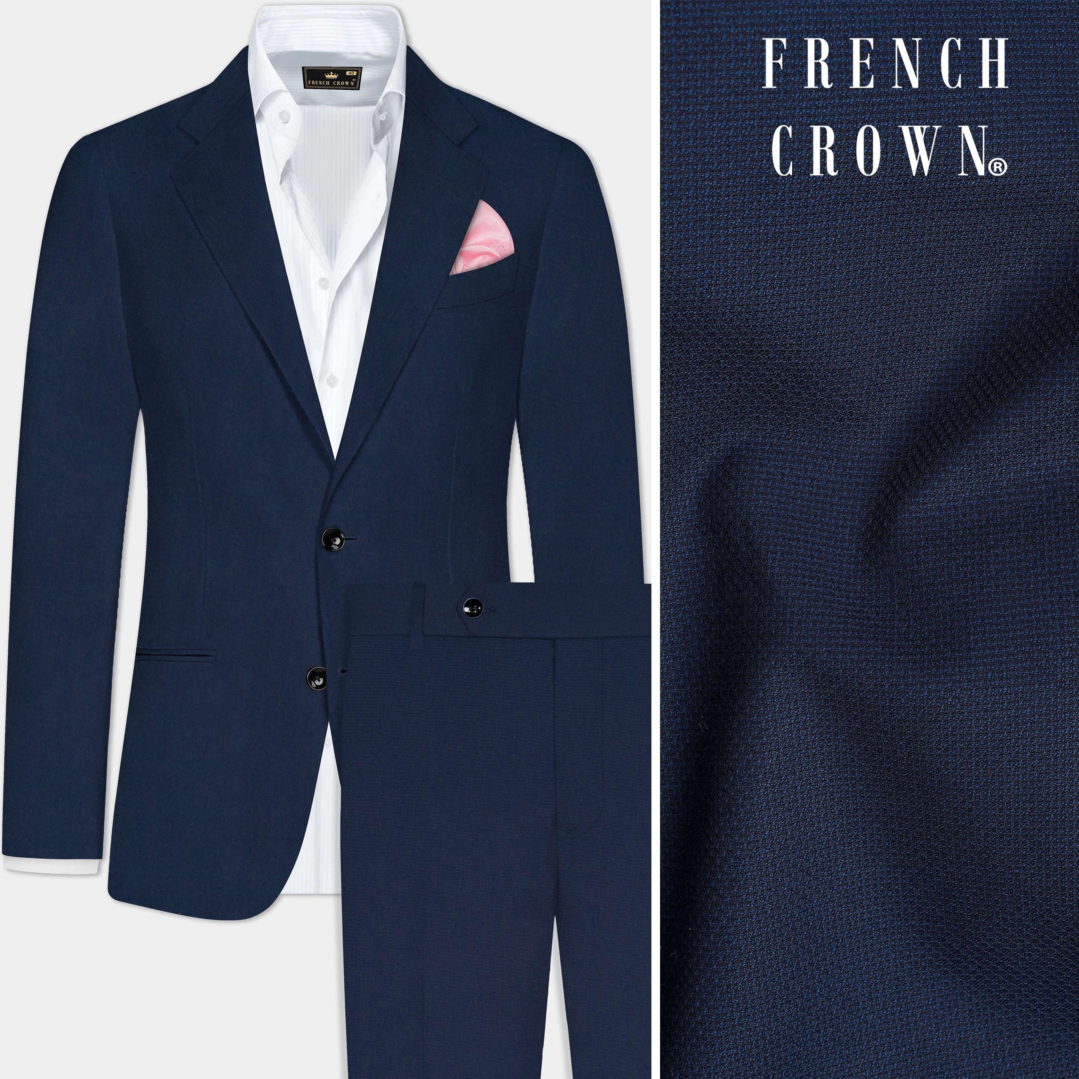 This Big Stone Blue Textured Wool Blend Suit offers a perfect blend of elegance and comfort. The single-breasted design and rich texture create a refined look, making it ideal for both formal occasions and professional settings. Crafted from high-quality wool blend fabric, it ensures durability and style. Pair it with a crisp white shirt for a timeless appearance or choose a light grey shirt for a contemporary edge.