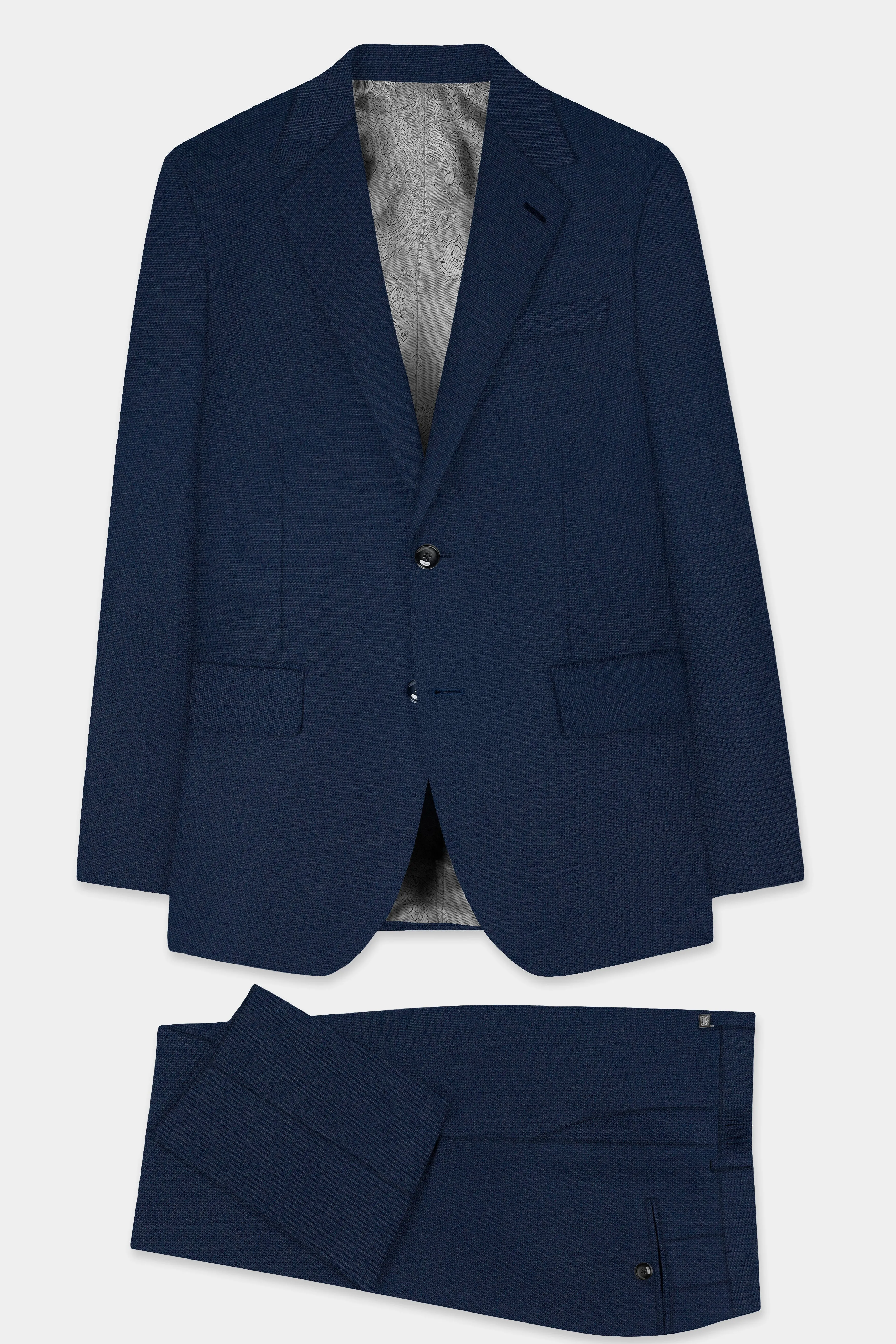 Big Stone Blue Textured Wool Blend Single Breasted Suit