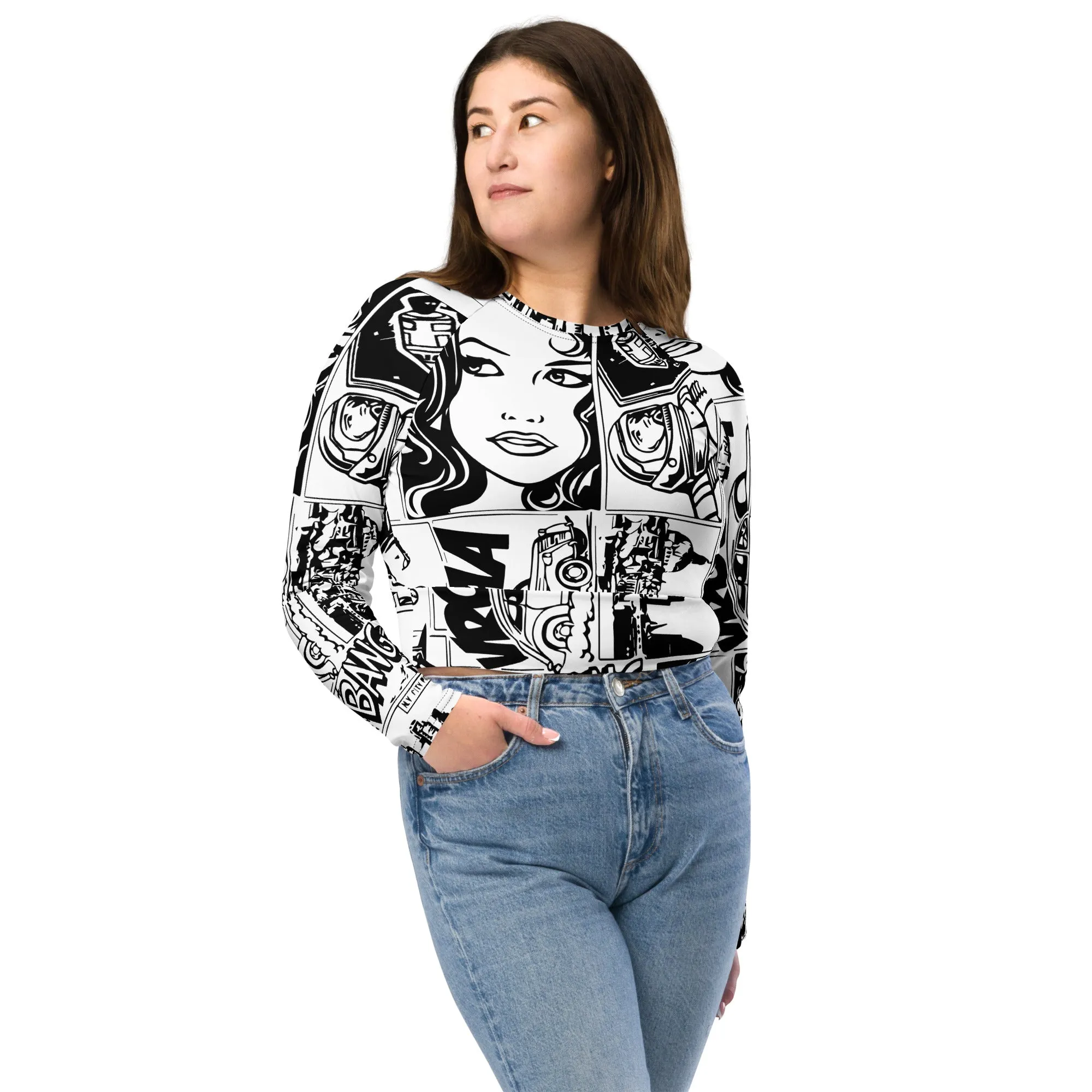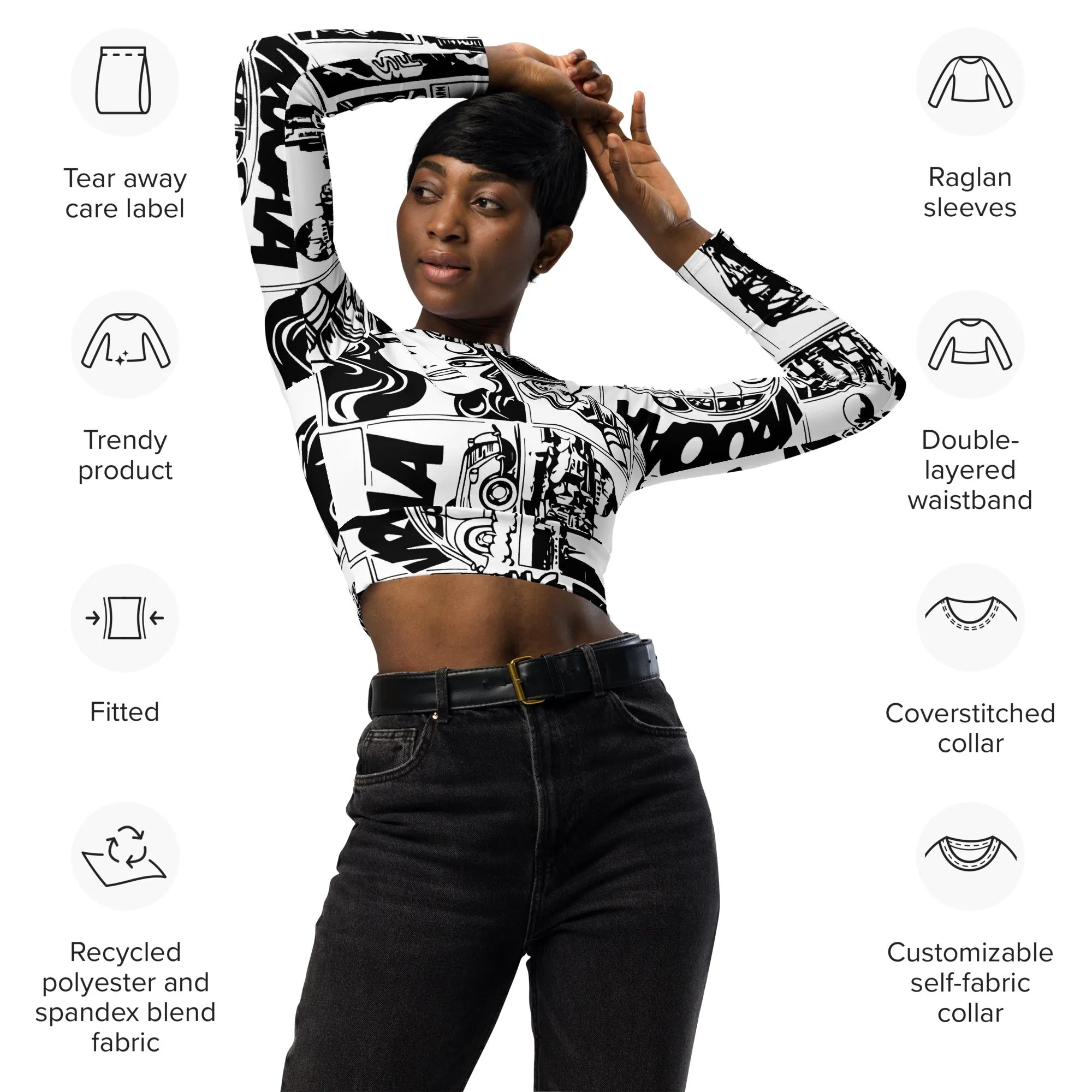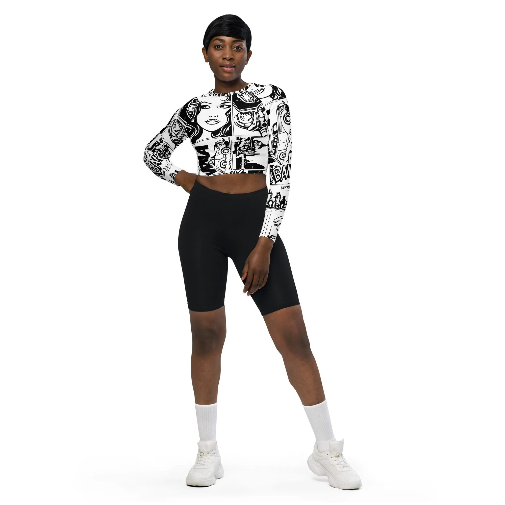 Black & White Comic Book Recycled Long-sleeve Crop Top