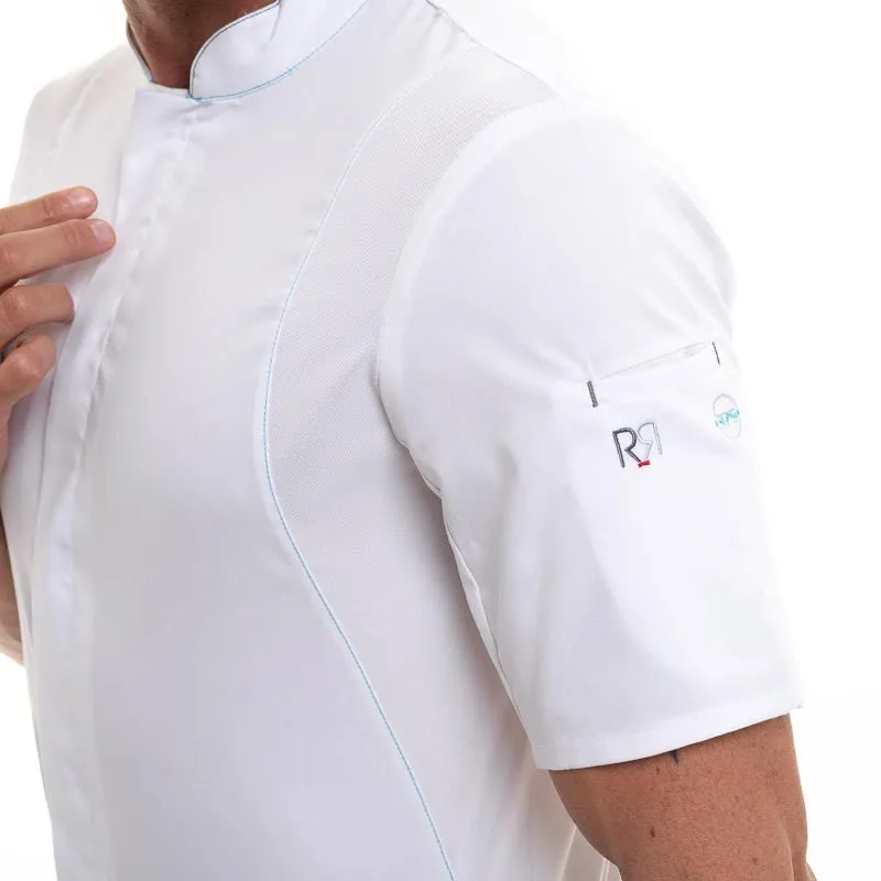 Robur is constantly searching for innovative technologies and patents to make their chef coats both modern and practical. Far from the traditional chef coat, Robur constantly innovates by offering technologies tailored to the needs of kitchens. The 37.5 technology keeps the body at the ideal temperature throughout the day. To achieve this, the 37.5 technology integrated into the garment's fiber allows sweat to transform into vapor in case of heat and the body to warm up when it's cold.