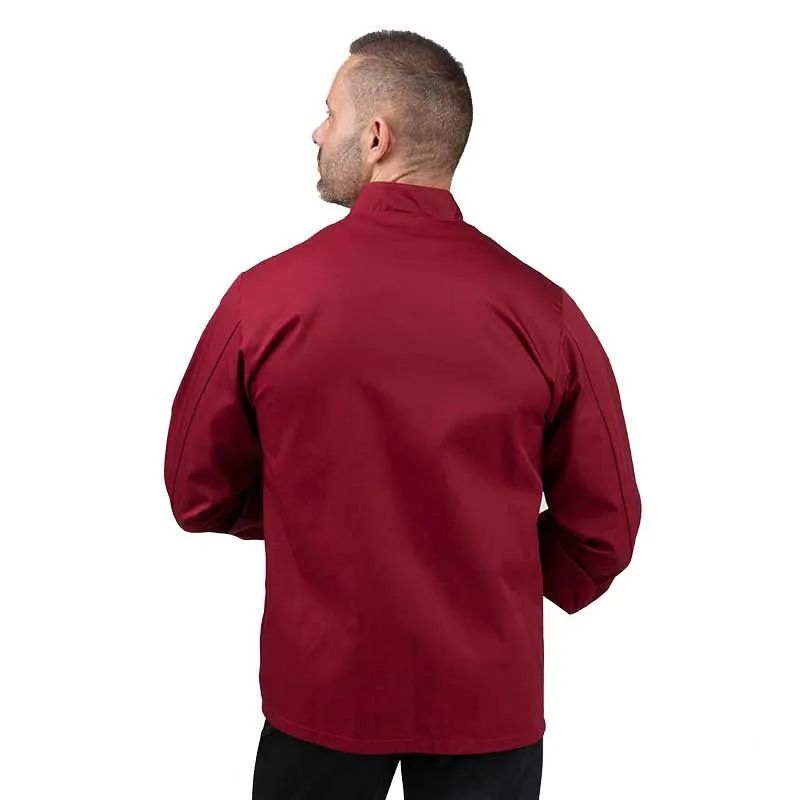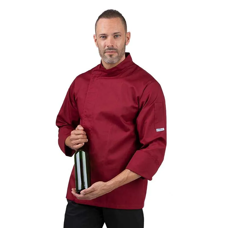 As an expert in the field, you'll appreciate the strikingly unique color of this Burgundy Chef's Coat from MANELLI. Designed with a must-have pen pocket and crafted with superior European fabric, this coat is perfect for those who appreciate modernity. Pair it with black pants for a polished look. Not only is it easy to maintain, but it also offers a comfortable fit for long hours in the kitchen.
