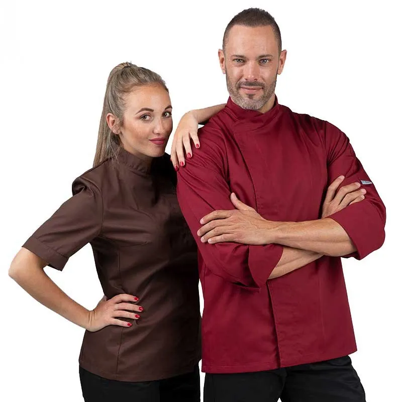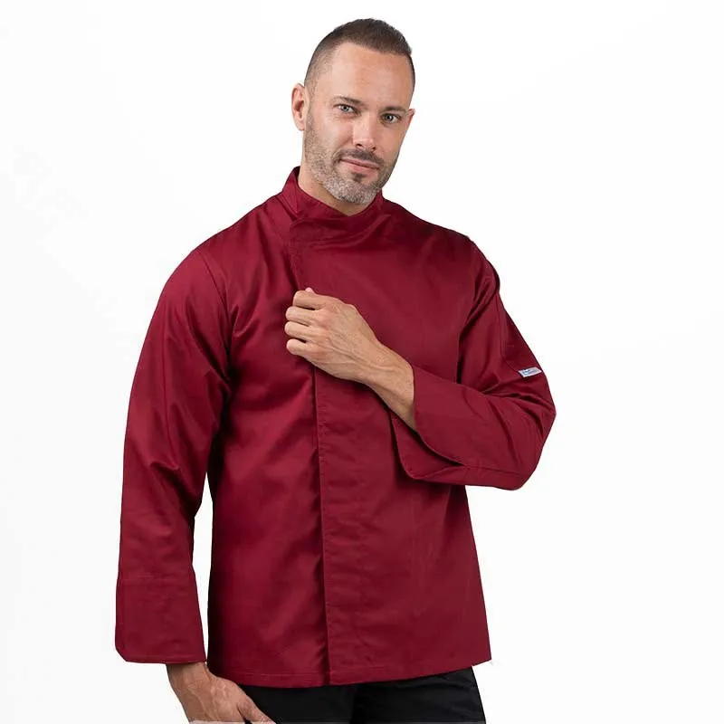 With the Burgundy Chef's Coat, MANELLI provides a 100% creation for men. Made from polycotton fabric, this chef's coat offers a unique blend of lightweight and comfort. Whether with roll-up long sleeves or short sleeves, it is suitable for all seasons. Its standing collar and asymmetrical cut, always stylish, are a must-have in the kitchen.
