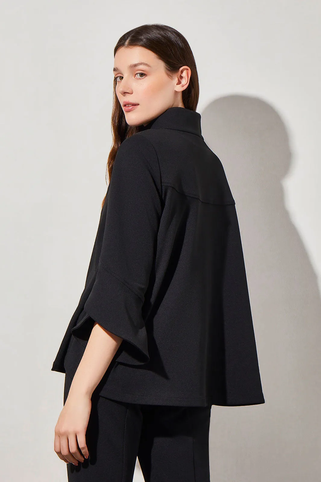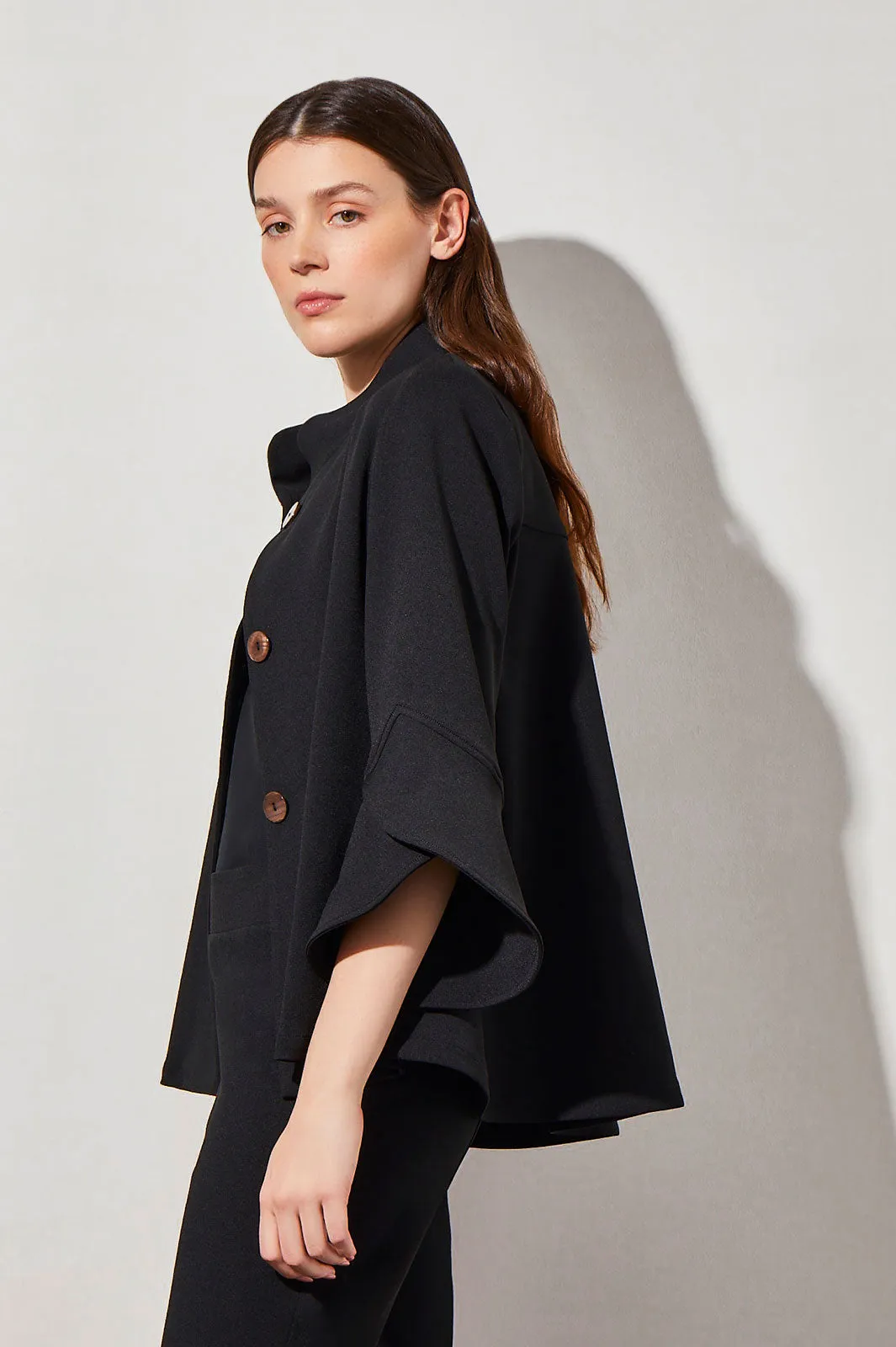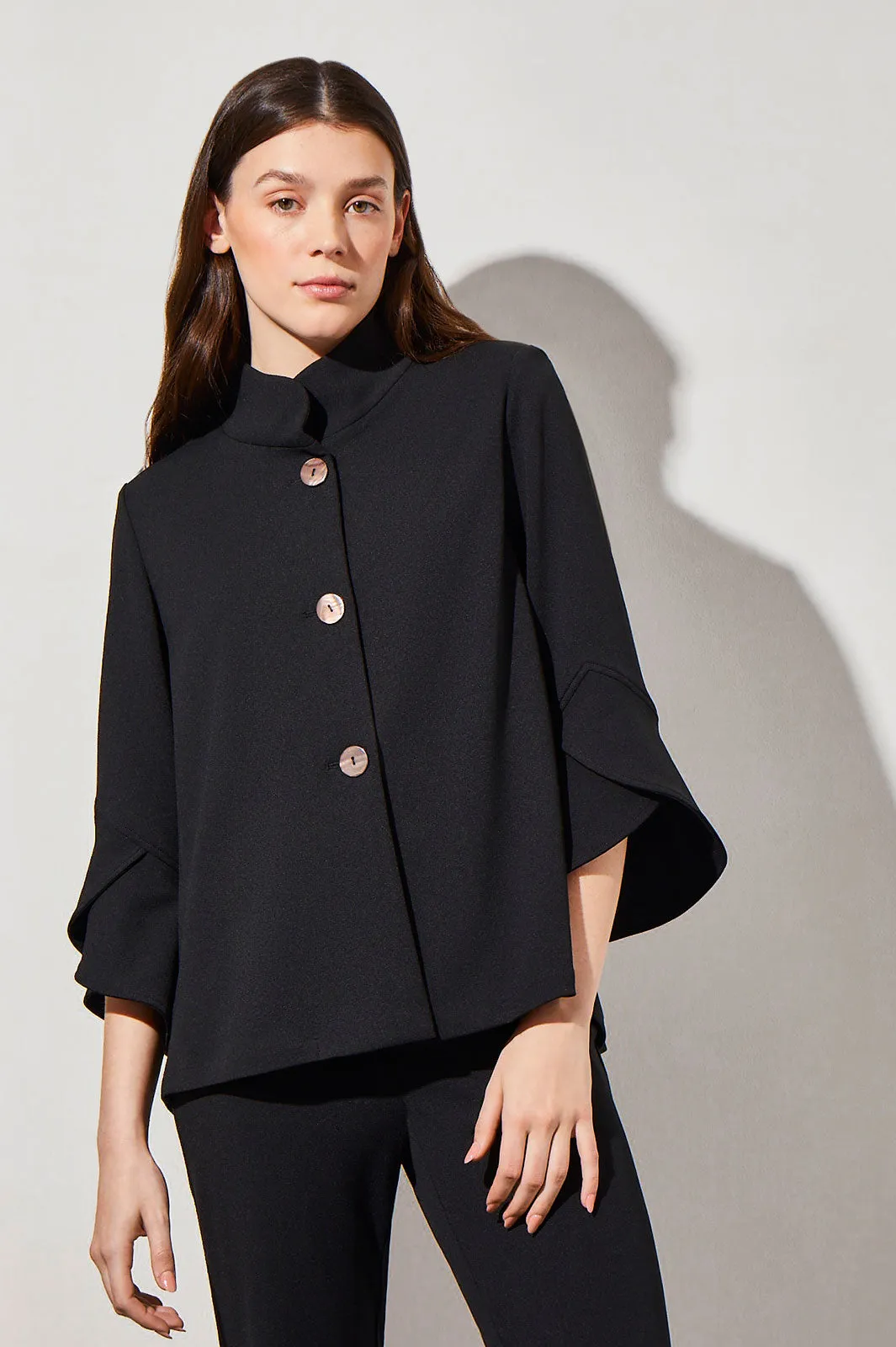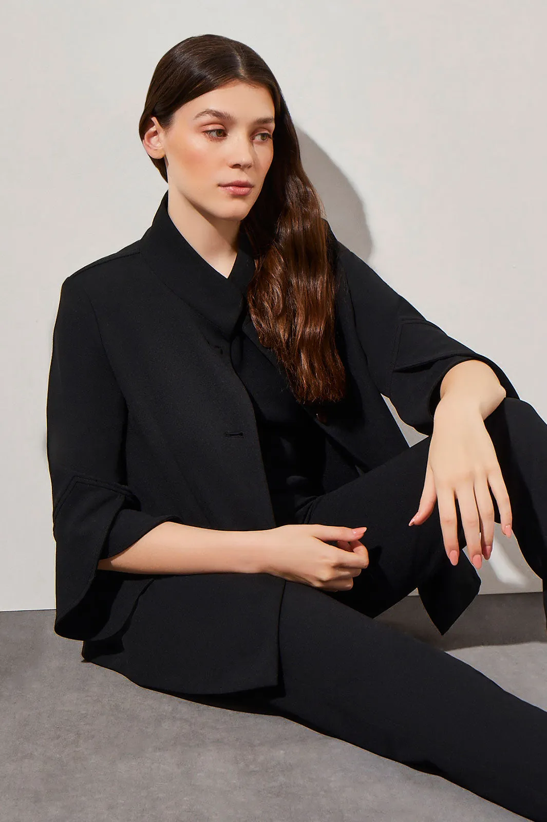 Bring a little flair to your seasonal style in our Button-Front Bell Sleeve Deco Crepe Jacket - a classic layer with a modern feel. Its bracelet-length bell sleeves are perfectly complemented by a classic heritage silhouette and sleek winged collar. Available in two versatile tones, this soft deco crepe jacket is your go-to layer to finish a variety of sophisticated looks.