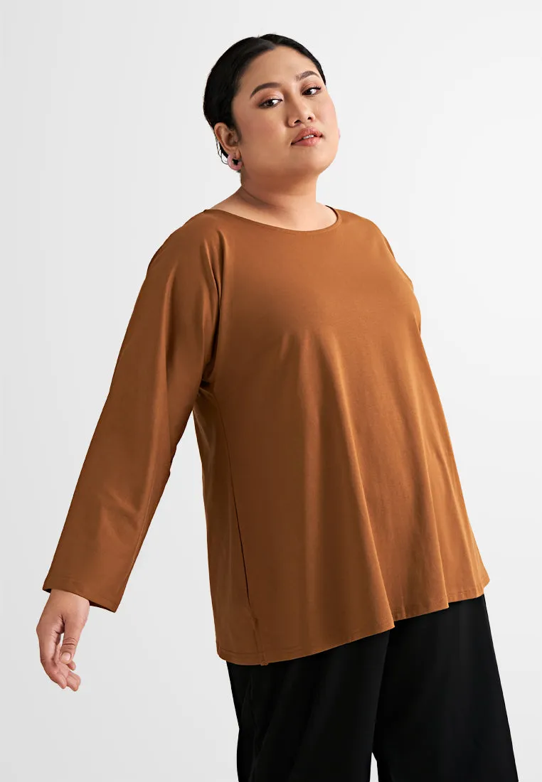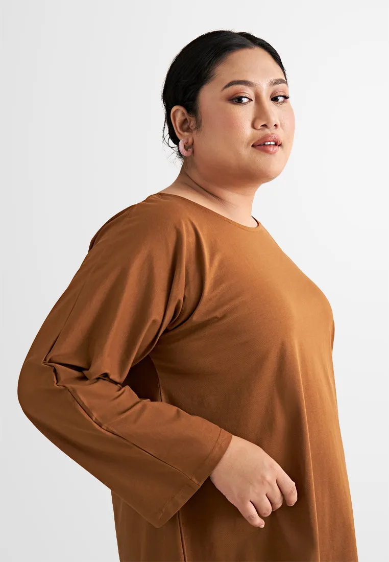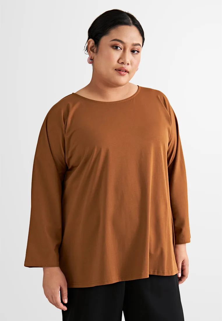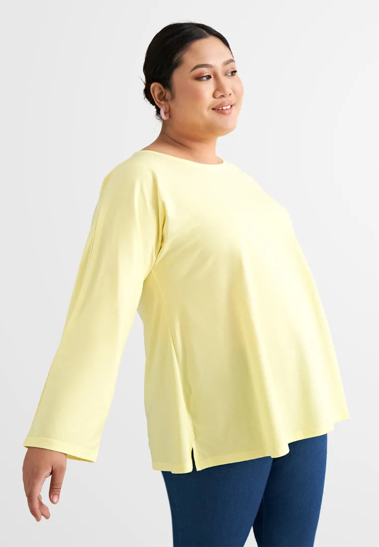 Round neck - 7/8 cropped sleeves - Side slits - Boxy cut