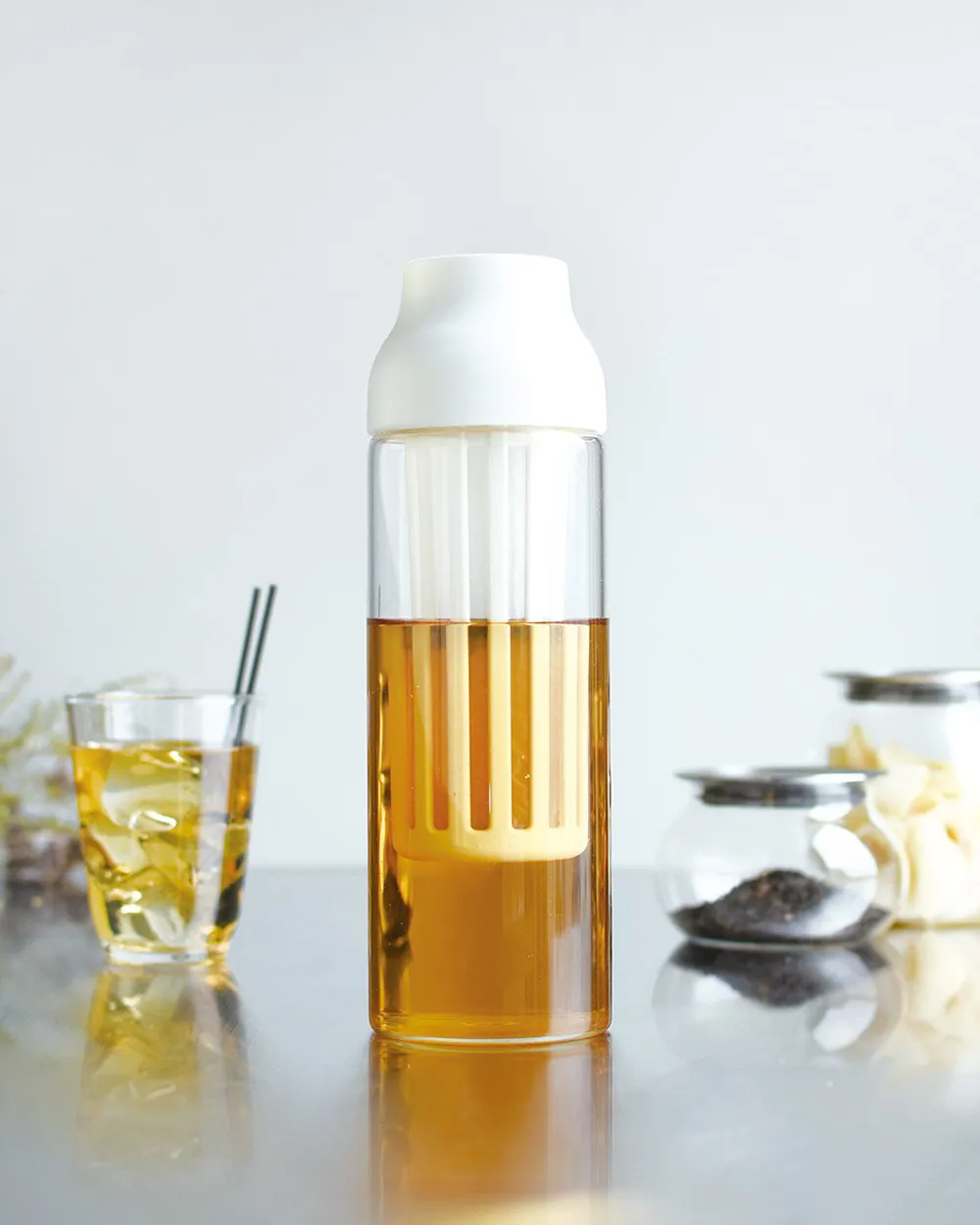 This carafe is created to provide ease of use, as the lid of the carafe opens automatically when the bottle is tipped, allowing you to pour out from any direction. As the bottle is made of heat-resistant glass, odors and stains do not remain and it is easy to keep clean. The new Capsule cold brew carafe comes with a mesh filter that lets you easily make delicious cold brew coffee and tea. Japanese homewares company Kinto have been designing and producing smart, design-driven products since 1972. Kinto's sensibly designed tableware and serving ware carefully balances usability and aesthetics to provide comfort for everyday use.