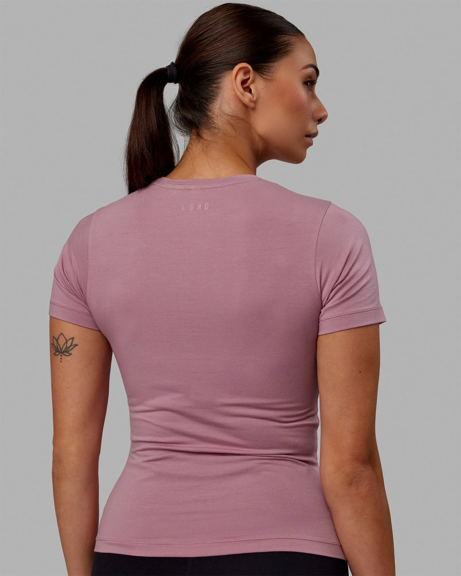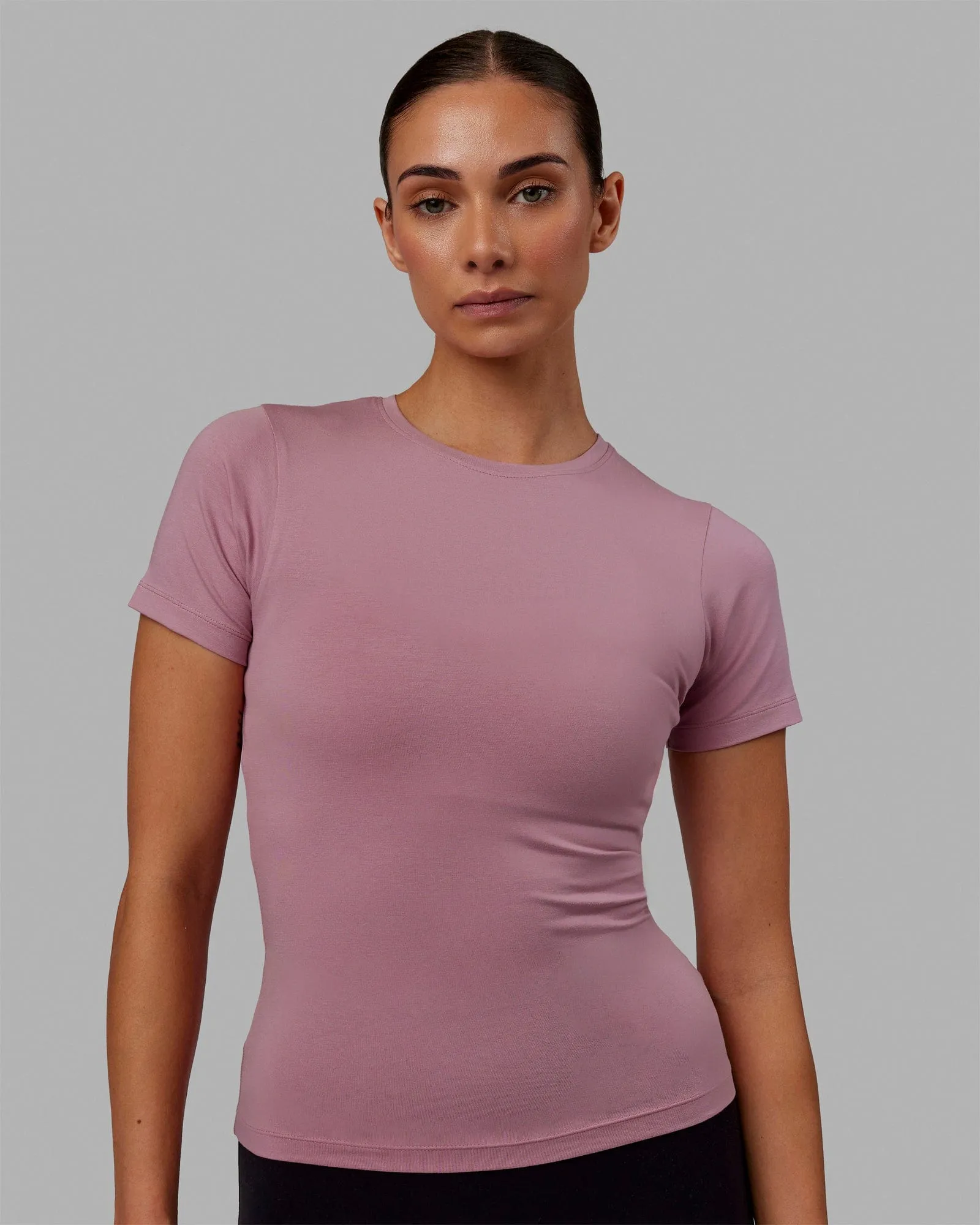 An evolution of one of our most loved cotton-blend fabrics into a lighter, more flowy material with a super soft hand feel. The Cosmetic Pink PimaFLX-Lite Fitted Tee is made from premium extra long Pima cotton yarns interwoven with spandex for a functional stretch and luxurious feel.