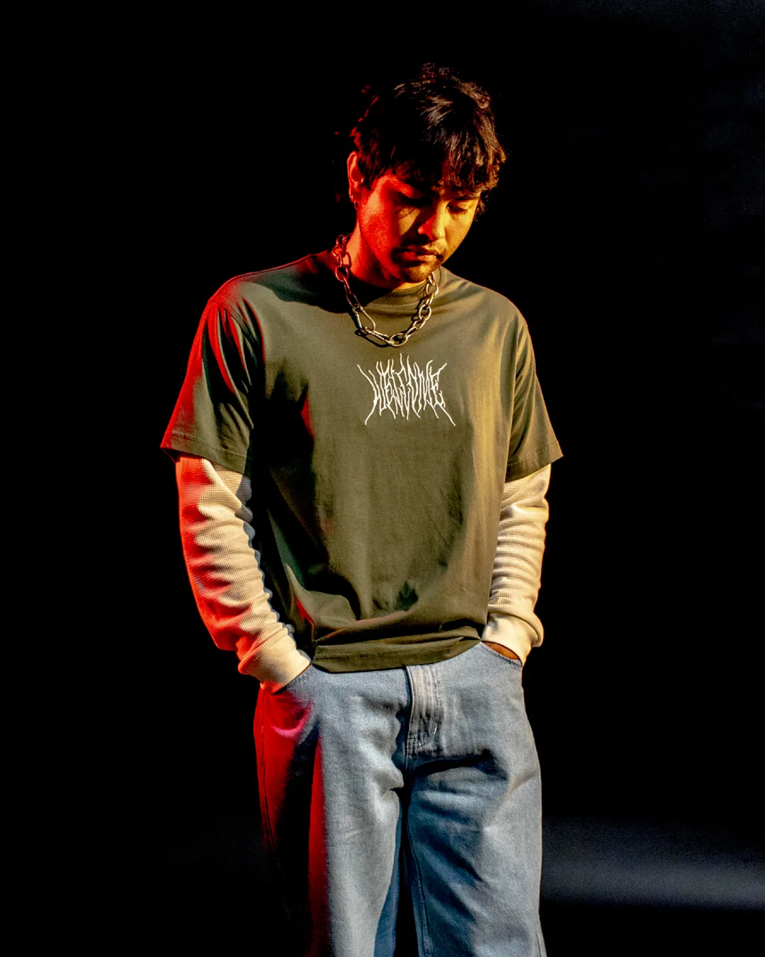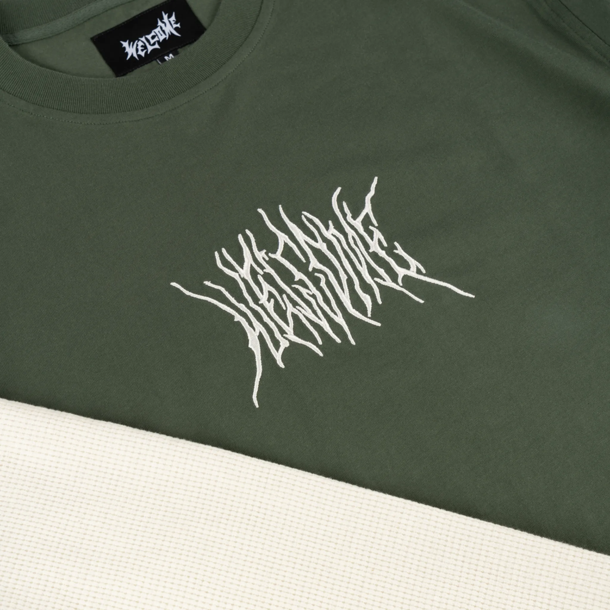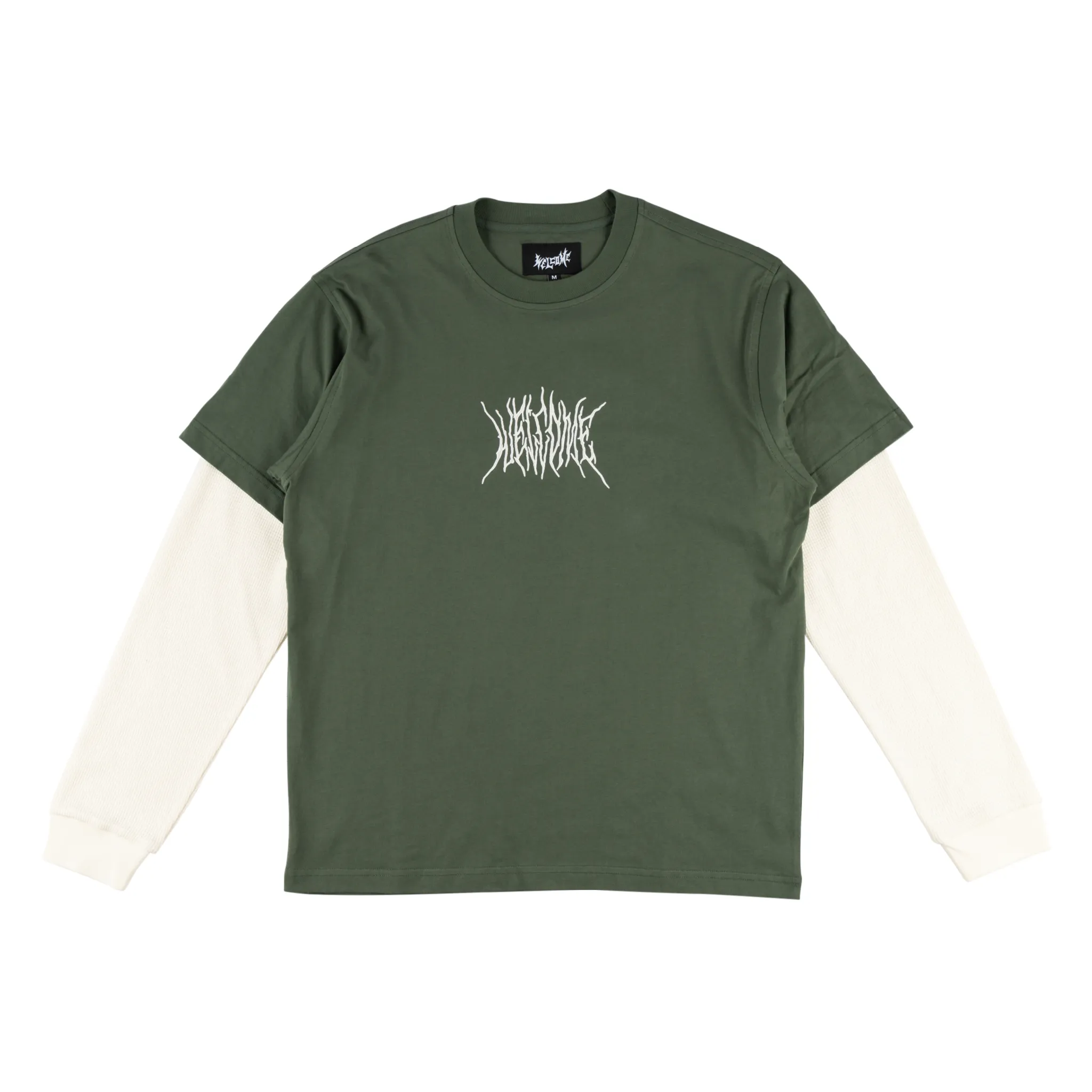 Waffle-knit thermal long sleeves sewn in at shoulder